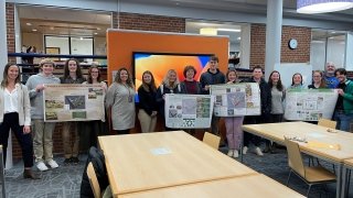Throughout the fall semester Environmental Studies' faculty, Kearney Coupland's ENVS-3083, Environmental Psychology and Design, class worked with Lisbon Central School to come up with conceptual designs for the school’s courtyard. Students did a site analysis of the courtyard, conducted a survey and interviews with administration and teachers, and facilitated a design workshop for 6th-grade students in order to inform their designs. Using what they learned from their research with the school and based on environmental psychology concepts and theories, groups of students came up with some interesting and creative designs for the spaces that will be used for the school’s development of a proposal for the space in the future. In addition to designing an awesome new multi-functional space, the students had a great time working with Lisbon Central School and getting to engage with the surrounding communities.
