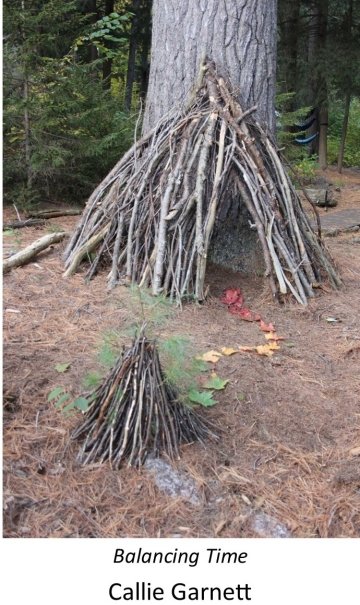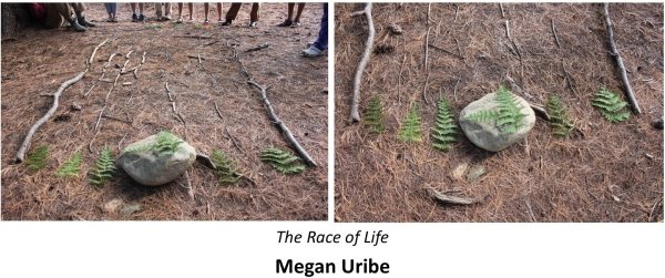 On the final day of a warm and sunny September, Professor Mark Sturges invited the Arcadians to build environmental sculptures out of found materials such as sticks, leaves, pine needles, and ferns. As part of their Writing the Adirondacks course, this assignment asks students to adopt the style and approach of environmental artist Andy Goldsworthy to create a visually appealing and meaningful sculpture, the design of which grows organically from the landscape of Massawepie and the outdoor experience of the semester. Many students constructed their sculptures as commentaries on human-nature relationships and connected their works to the personal and academic journey they are currently taking together. You can view these Arcadian artworks in the photos below.