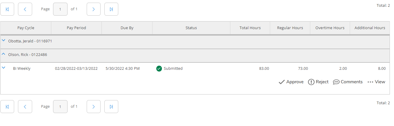 Both views above provide you with the option to Approve, Reject, Comment, or click on View to be taken to the time card for further analysis and editing. If you edit the time card the employee will receive an email notification advising you have edited the time card.