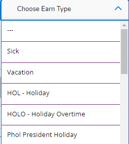 - Use the + Additional Time tab to select from the Choose Earn Type options or click Remove