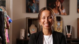 Niio Perkins, Kanien’kehá:ka Bear Clan, is an award-winning artist whose spectacular beadwork is treasured throughout North America. Her modern aesthetic fuses traditional symbols with organic shapes and vibrant colorways, creating unique pieces inspired by the beauty of her Haudenosaunee culture.