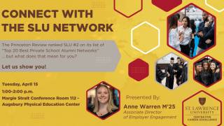 The Princeton Review named St. Lawrence University at No. 2 on “Top 20 Best Private School Alumni Networks,” which is great – but how do you connect to that network to get internships and jobs?