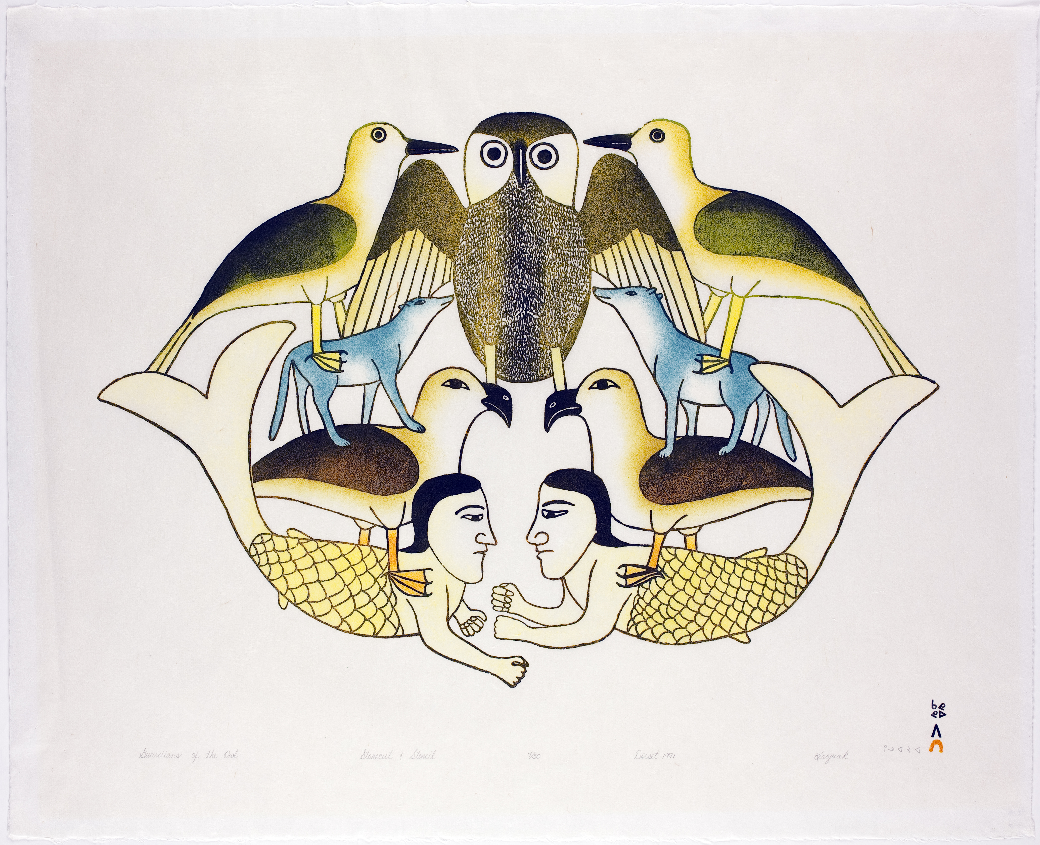 The Canadian Inuit art collection at St. Lawrence University includes more than 125 original prints, drawings, photographs, and carvings from Cape Dorset, Pangnirtung, and Baker Lake. Inuit art holds a particular attraction for a university teaching collection as it offers many disciplines a starting point for discussions on nature and the environment, traditional stories, spirituality, social and political commentary, aesthetics, and design