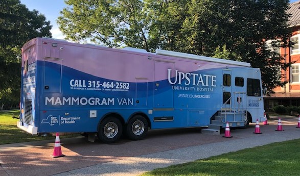 To schedule an appointment for a mammogram with the van, call 315-464-2582. Appointments can also be requested online at http://www.upstate.edu/mobile-mammography/.