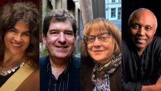 Collage of Stephanie Elizonda Griest, Robin Hemley, Trudy Lewis, and Okey Ndibe.