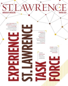 The mission of St. Lawrence magazine consists of the following five objectives: to fairly and accurately reflect the core values and mission of St. Lawrence University; to acknowledge and publicize the work and achievements of individuals, groups, and programs of the University; to inform readers about issues of importance related to the University; to consistently engage readers in order to foster a positive lifelong connection with and a strong commitment to the University, and to provide a platform for Laurentians to share news and stay connected with each other.