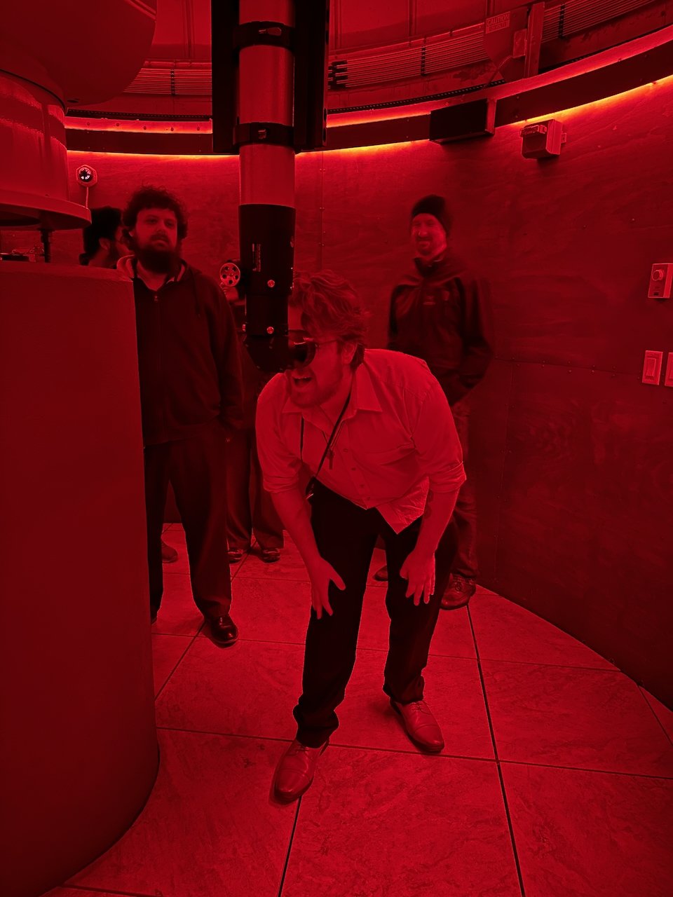 St. Lawrence University Physics astronomers Aileen O’Donoghue, Jeff Miller, and Tyler Karasinski ’24 attended the Astronomical Society of New York’s Fall 2023 meeting at Siena College in Loudonville, NY. The meeting gathered 70 faculty and students of astronomy from academic institutions across New York. Tyler presented a poster of his research, and after the meeting they all had a chance to observe Jupiter, Saturn, and the Moon through Siena’s 0.7-meter telescope.