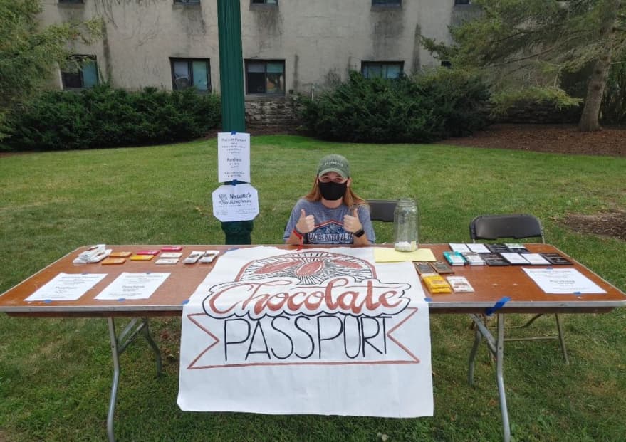 During St. Lawrence’s fall 2021 club fair, St. Lawrence students involved with the Chocolate Passport Project connected with students, faculty, and staff about all things Chocolate Passport. Students developed a listserv that allows members of the community to stay up-to-date about upcoming activities and events.