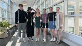 Senior biochemistry and chemistry majors recently gave presentations to the department to share the results of their year-long research projects. On the last day of presentations, six seniors were inducted into the Chymist Honor Society for achieving a 3.5 average g.p.a. in six or more chemistry classes. Congratulations seniors!