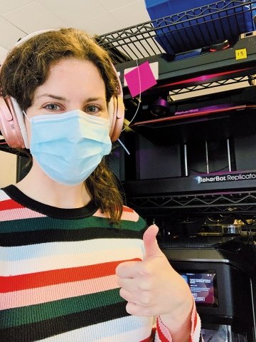 Madeleine Garone ’12 has been working under lockdown from her Brooklyn apartment as a sales manager at MakerBot, a manufacturer of 3D printers, since March. From the onset of COVID-19 pandemic, 3D printing has played a major role in grassroots efforts to address the medical supply chain shortage, especially in relation to personal protective equipment (PPE) for those on the front lines. Partnering with Columbia University and Tangible Creative, another 3D printing company, Makerbot yielded production of approximately 1,000 finished face shields per day during the month of April.