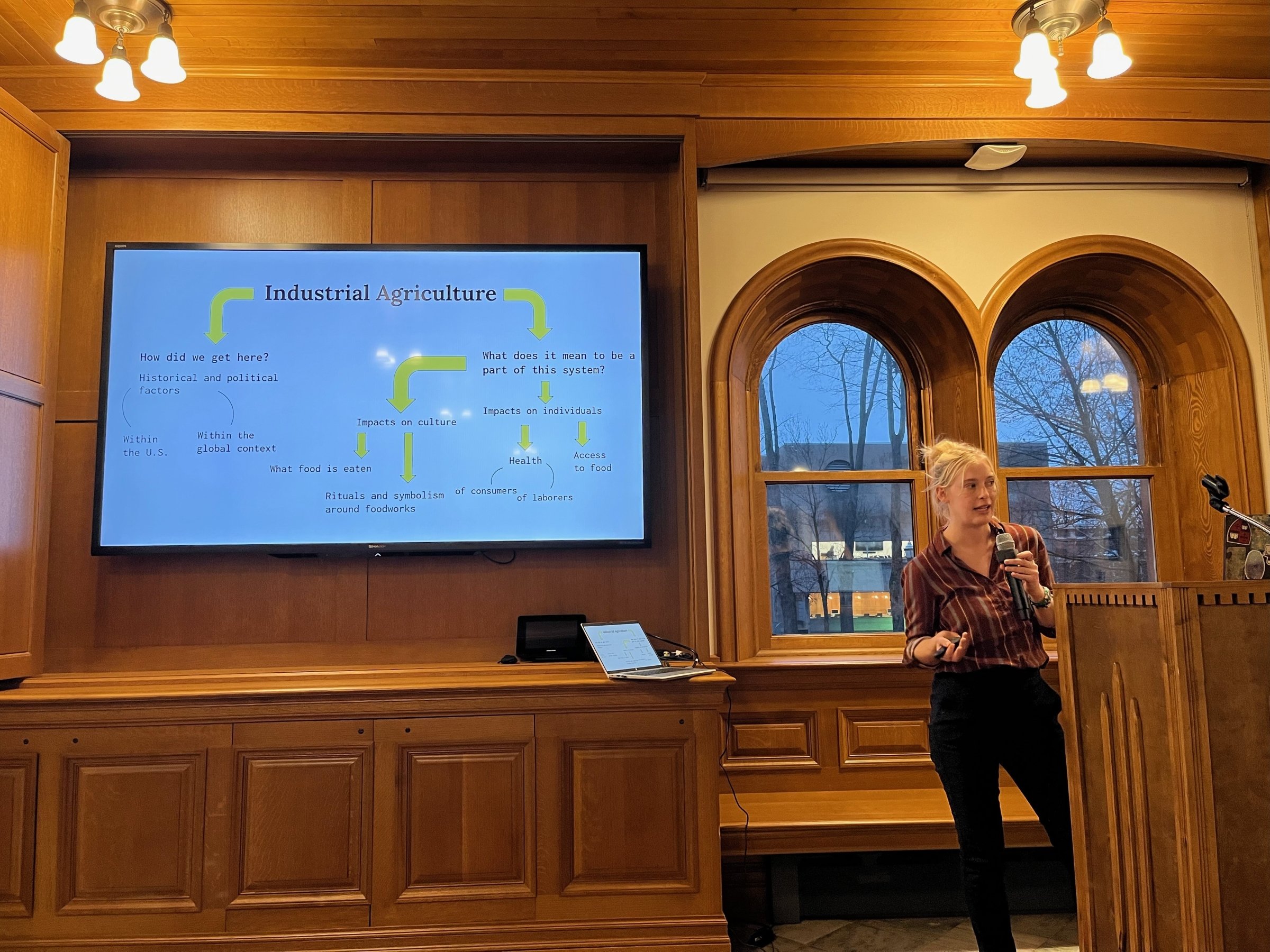 Abby presented the history, complexity, and social implications of industrial agriculture.