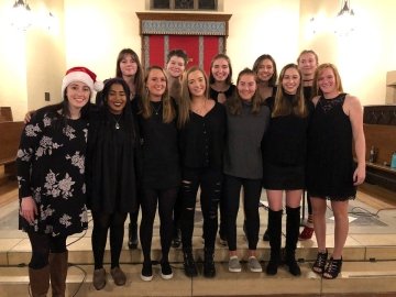 To succeed on the volleyball court, Grace Kelly ’19 joined the Singing Sinners.