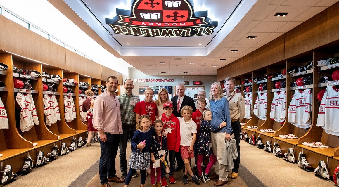 The dedication of the Joe Marsh Men’s Hockey Team Suite was celebrated earlier in the day. The newly renovated space for student-athletes and coaching staff was made possible through the generosity of alumni, parents, and friends. The celebratory afternoon also included a game day concert and tailgate that featured country music recording artist Blaine Holcomb ’14, who performed to a huge crowd on North Country Field.