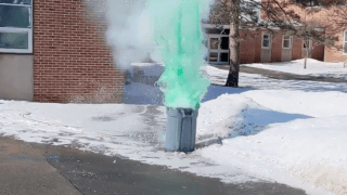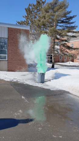 Even in the colder months, the Geology Department does not shy away from some hands-on, outdoor activities to illustrate geologic concepts. For her class "Natural Disaster and Climate Change," Dr. Sarah Brehm organized a real-time volcano explosion behind Brown Hall.