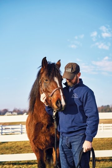 In 2018, with the arrival of six wild horses from Wyoming and Nevada, the EquiCenter launched Mission Mustang. During the 10-week program, skilled horse trainers guide veterans through exercises that teach the wild horses to accept human touch and earn their trust, ultimately preparing the horses for new homes. By nature, horses are prey animals and are hypervigilant. Being removed from the open range adds to their anxiety. Veterans, many who have PTSD, can relate—they too experience hypervigilance and stress and may struggle to reintegrate into their “herd.”