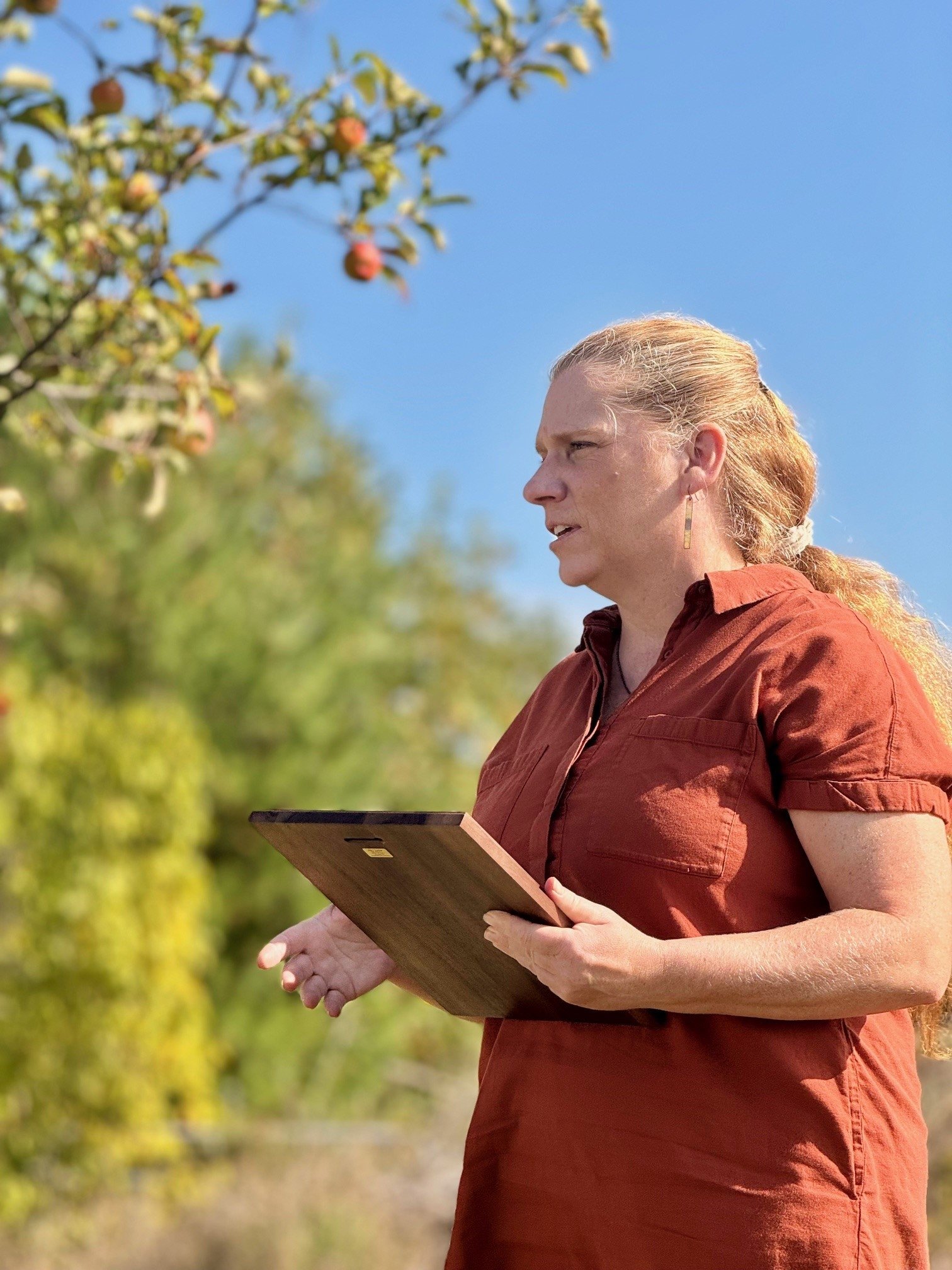 During the ceremony, the Environmental Studies department chair, Associate Professor Sara Ashpole, announced the Carrie Johns Environmental Internship, providing students with hands-on learning and research opportunities inspired by her work. Professor Jon Rosales announced the dedication of an orchard in Carrie’s honor, honoring her dedication and contributions to the Living Lab and the department, and presented her parents with gifts to honor her life.