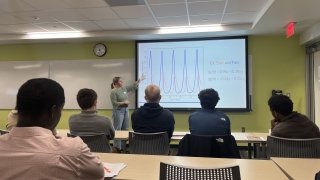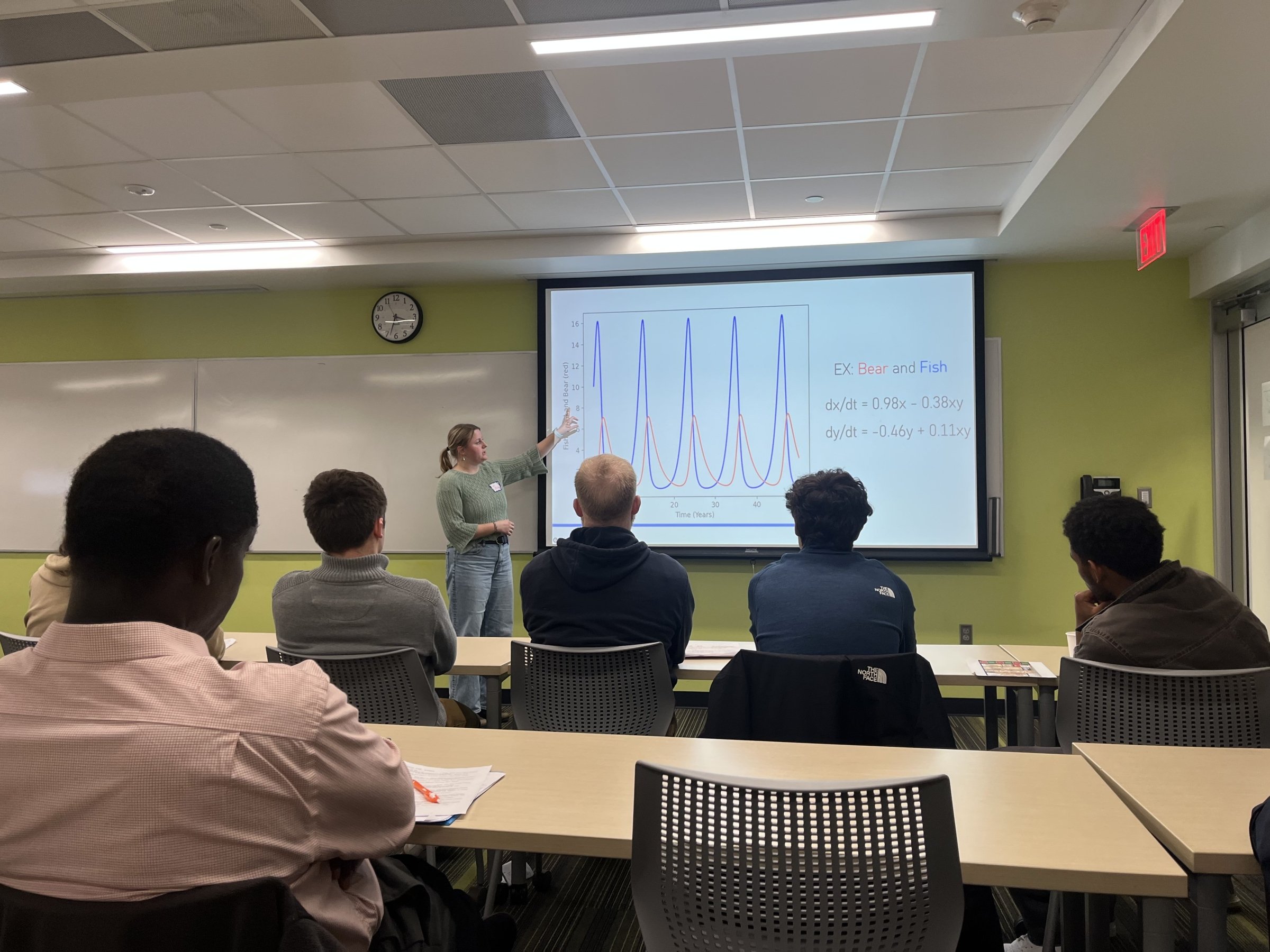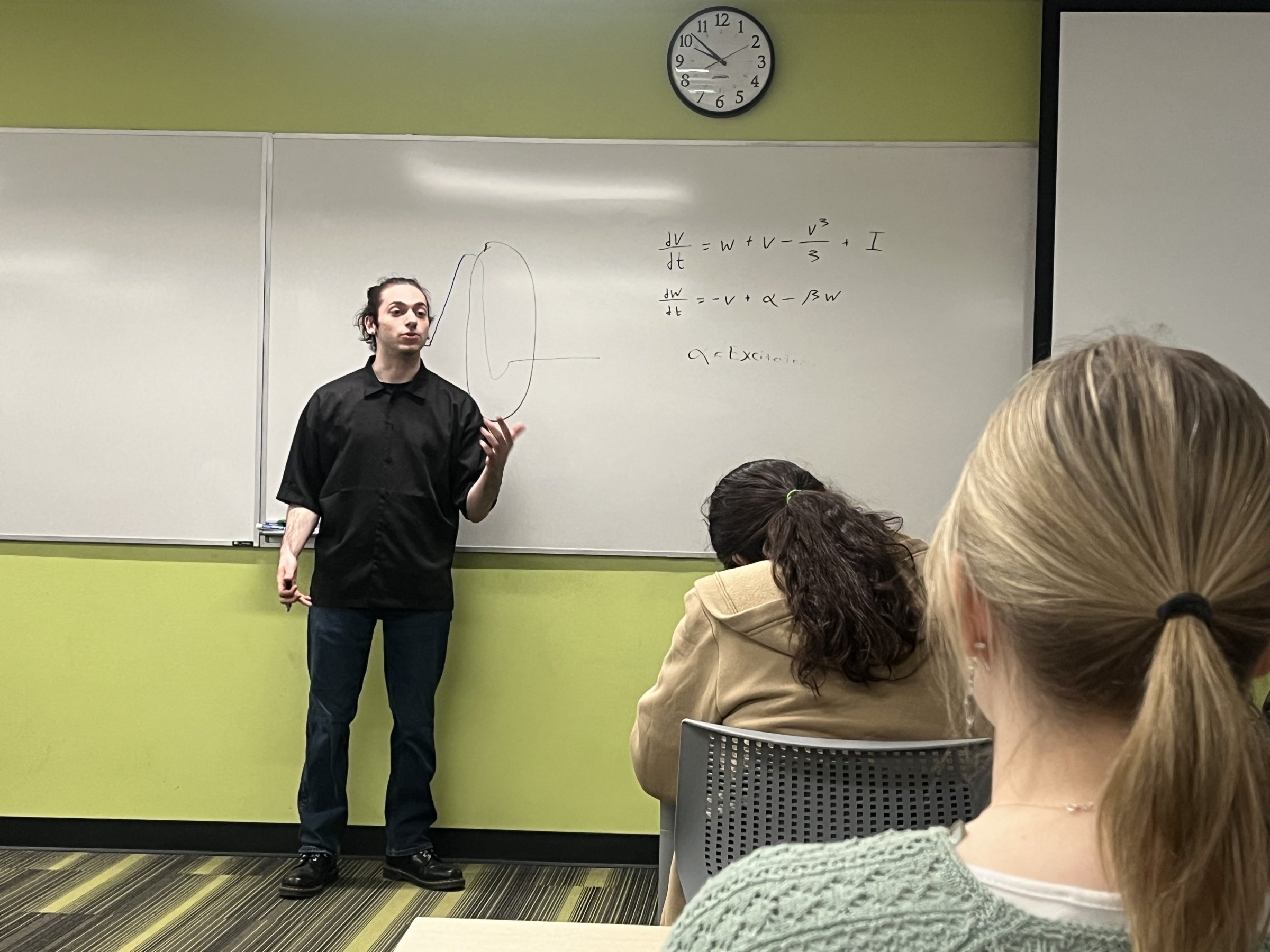 Jenny Krueger (’25) spoke on Numbers in Nature: Parameterizing Differential Equations and Jason Stasio (’25) discussed Visualizing Neruonal Firing Pattern: A Python-Based Exploration of FitzHugh-Nagumo Model.
