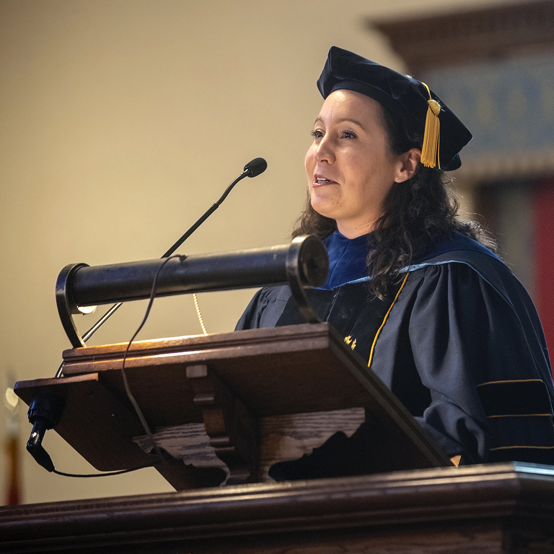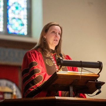 President Morris also shared her vision with the audience assembled in Gunnison Memorial Chapel for what she calls “Laurentian Impact,” explaining that “it will take all of us, together,” including the University’s innovative, inspiring faculty and top-ranked alumni network, to build a strong future for the next generation of St. Lawrence students.