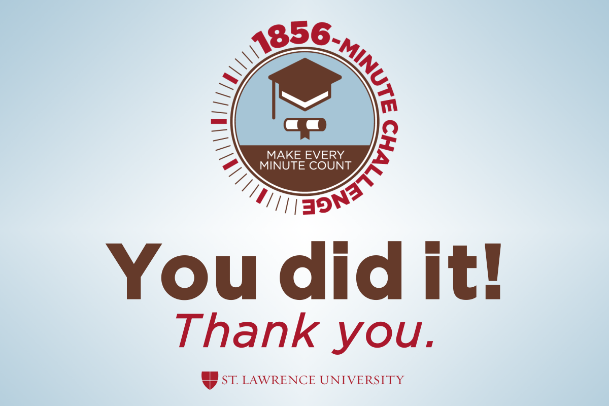 Thanks to the support of over 2,000 alumni, parents, students, faculty, staff and friends, St. Lawrence University’s 1856-Minute Challenge surpassed the $1 million mark on Thursday, April 8.