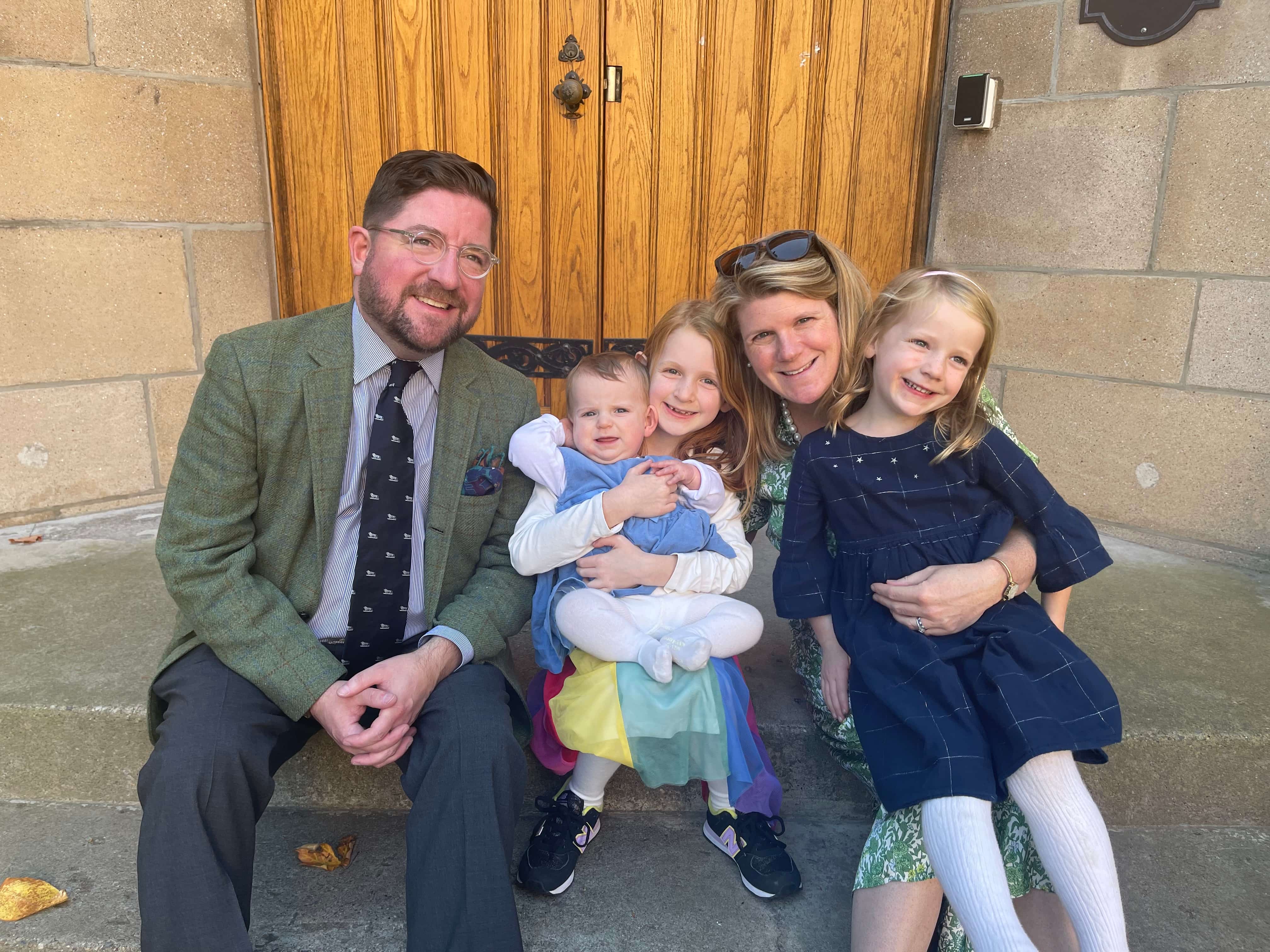 We were the last two people in the procession to walk into Gunnison Memorial Chapel that day. As we turned the corner to walk in, we passed by Ed Forbes ’02, Emily Hunt Forbes ’04, and their three girls—all under age 10. I leaned over to Jennifer and said, “Look Jennifer, the little girls are watching us.” And they were intently watching us. I have no idea what they were thinking, but hopefully part of it was, “Wow, that’s something I could do someday.”