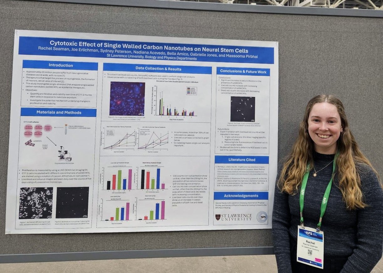 Three senior physics majors - Tyler Karasinski, Rachel Seaman, and Nora Wagner - attended the March Meeting of the American Physical Society (APS) in Minneapolis, from March 3rd - 8th. This meeting is a scientific research conference that brings together more than 13,000 physicists from around the world to showcase their work, connect with others, and discover groundbreaking physics research.