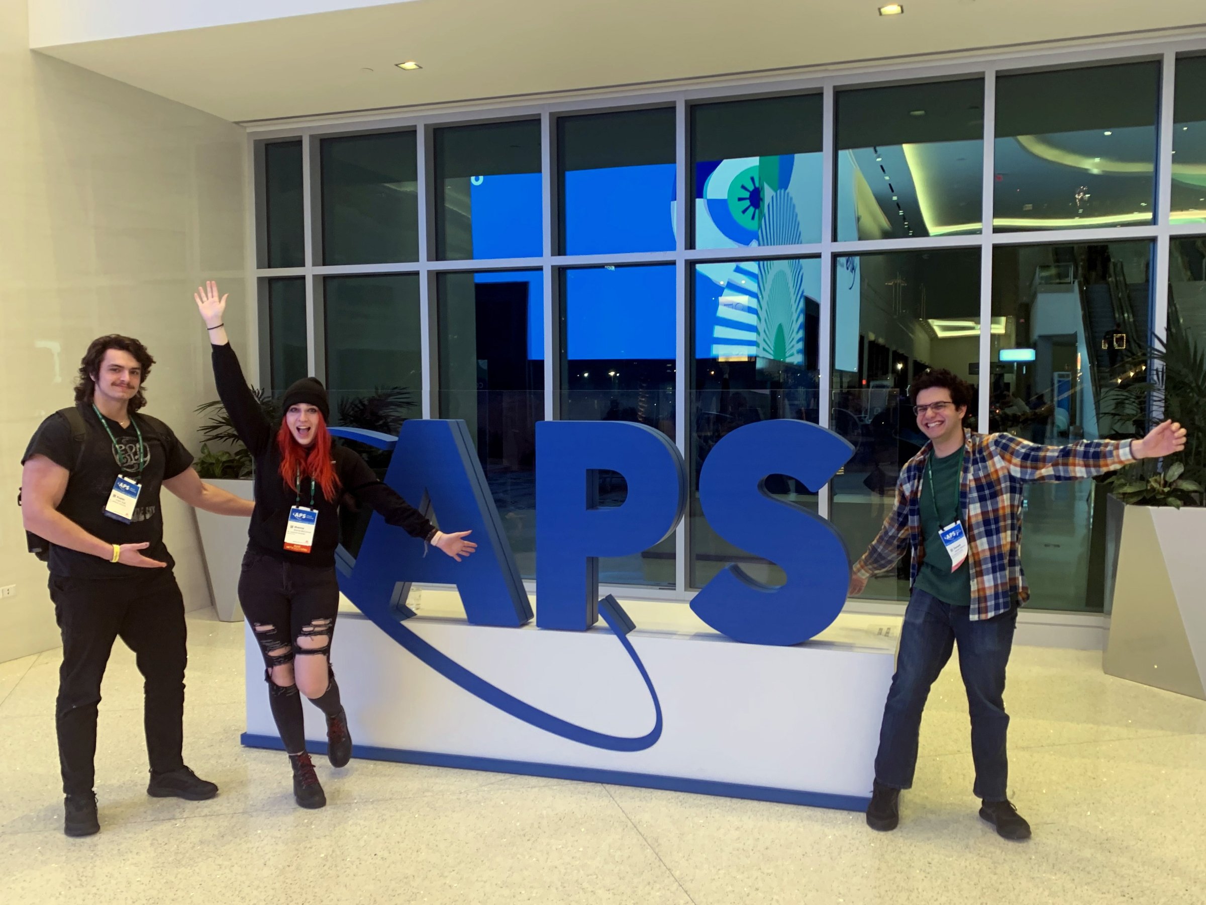 Four of our senior physics majors presented posters at the annual March meeting of the American Physical Society in Las Vegas, NV. Austin Galli, Brenna McConnell, and Ganesh Petterson attended the in-person section of the meeting, and Cameron Brochu attended the virtual meeting.