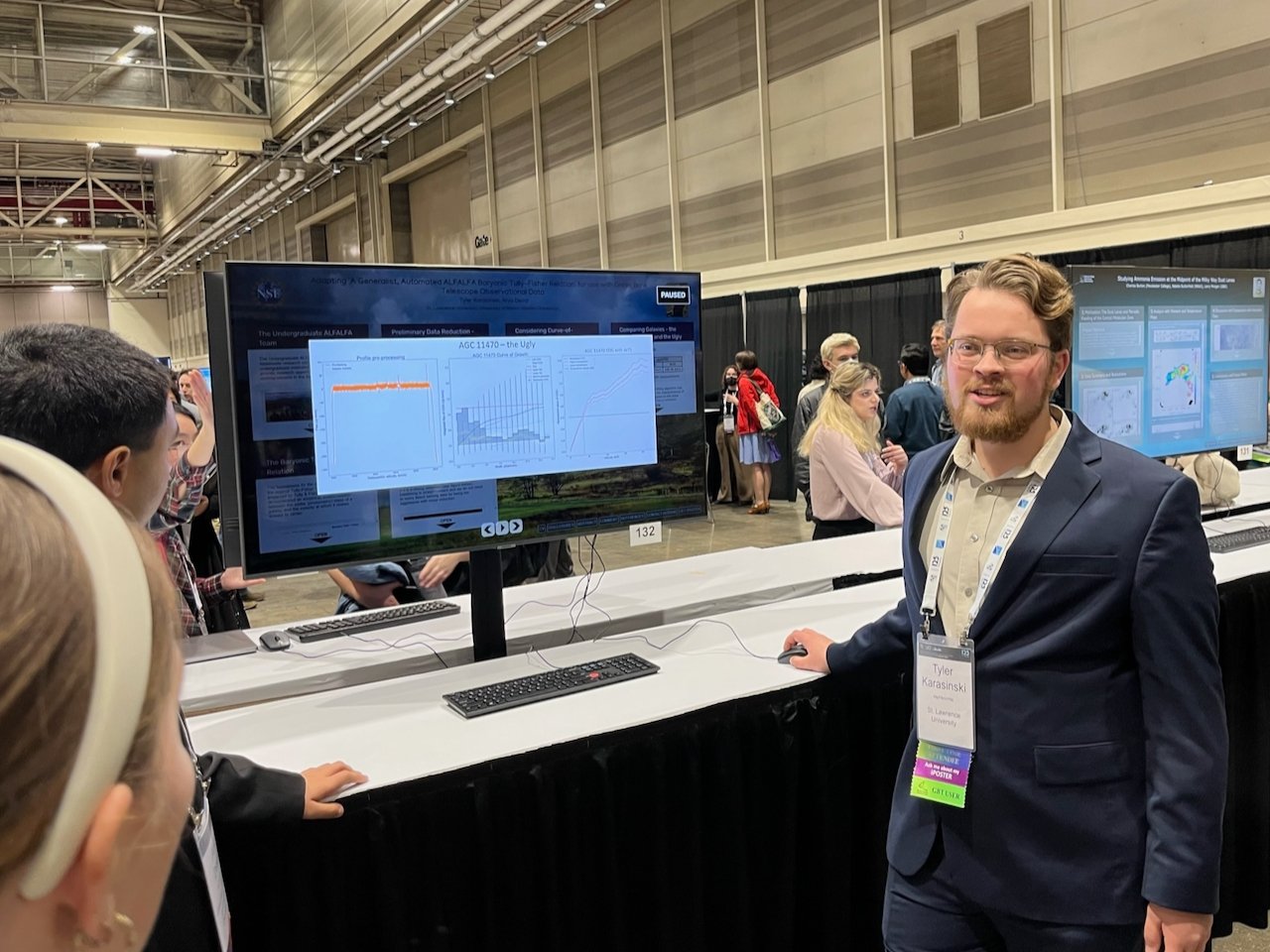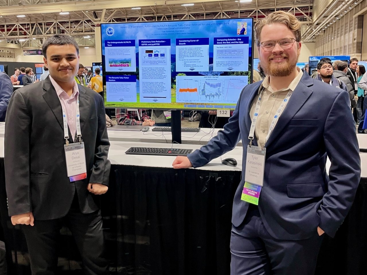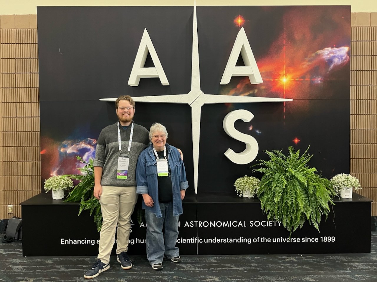 Henry Priest Professor of Physics Aileen O'Donoghue and Tyler Karasinski '24 attended the 243rd meeting of the American Astronomical Society (AAS) in New Orleans, Louisiana. Tyler gave a poster presentation of his senior research project, Adapting ‘A Generalist, Automated ALFALFA Baryonic Tully-Fisher Relation’ for use with Green Bank Telescope Observational Data, along with his fellow student collaborator on the project, Arya Desai '24 of the University of Illinois Urbana-Champaign.