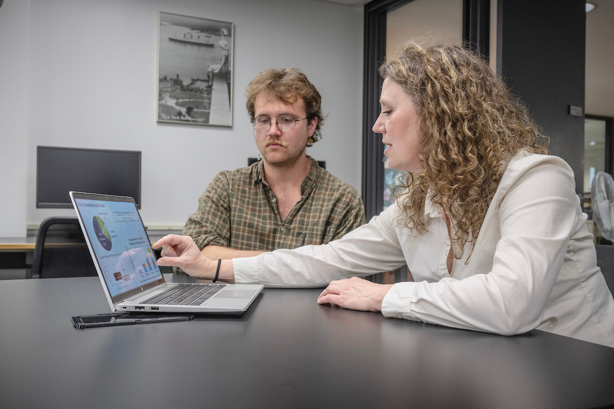 It all started in January 2023 when Assistant Professor of Environmental Studies and Public Health Lori Clark conducted an audit with some of her students. One of those students, Sam Voter ’25, pursued his Senior Year Experience (SYE) project with Clark on food waste diversion. Together, they found that campus was generating just under 5 tons of food waste per week.