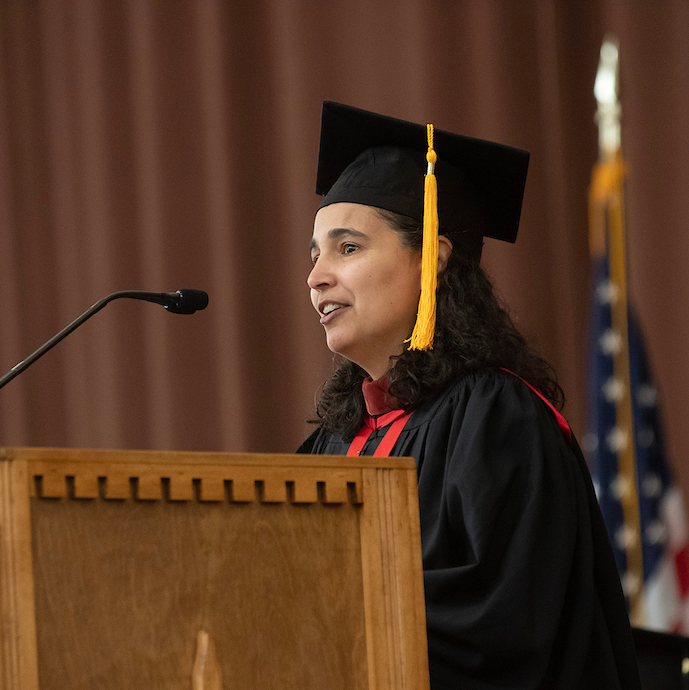 As a first-generation college student and mentor to many during her 18 years at the University, Ana Estevez, professor of biology and psychology and co-department chair of biology, was selected by President Morris to address the graduating class, marking a new St. Lawrence tradition.