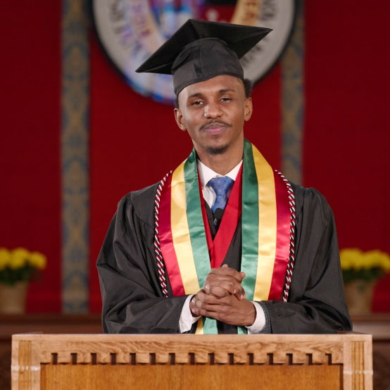 Several Laurentians were honored during Commencement including Hammi, who was St. Lawrence’s 2021 Joan Donovan Speech Contest winner. His speech centered on themes of overcoming obstacles and persevering together to facilitate much-needed change.