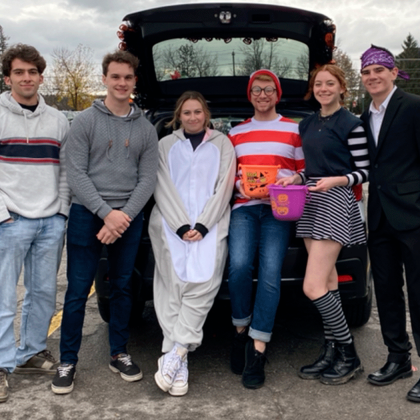 St. Lawrence’s Circle K, a student organization dedicated to community service in North Country communities, took part in the University’s Trunk or Treat event last month, and a photo of Hallie Heggeness ’22, Tyler Kearns ’22, Alexandra Hill ’23, and Trent Meyer ’23 passing out candy to local residents was featured by NorthCountryNow.com on Tuesday, Nov. 9.