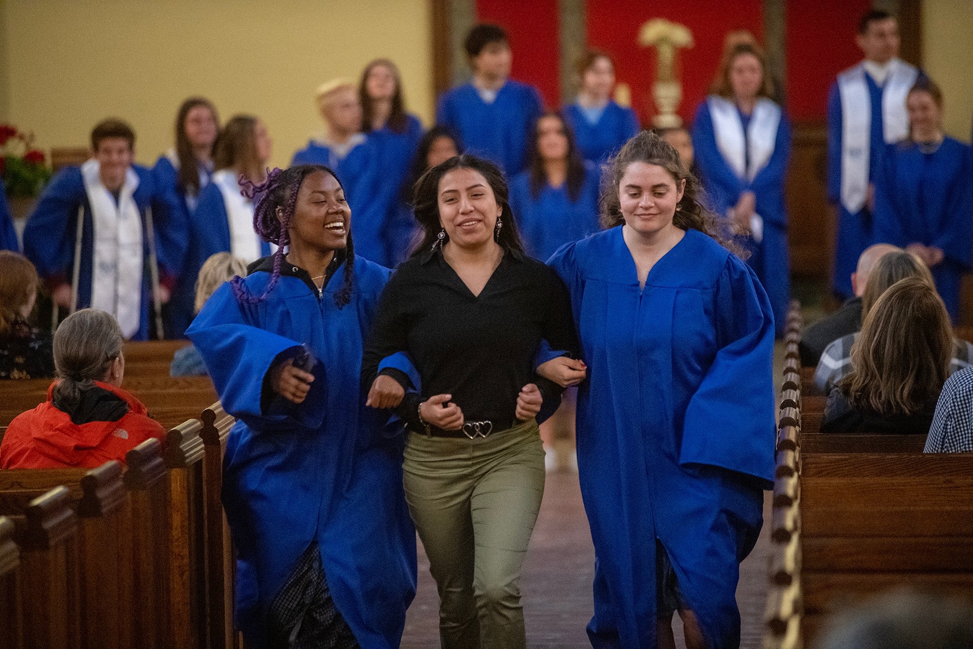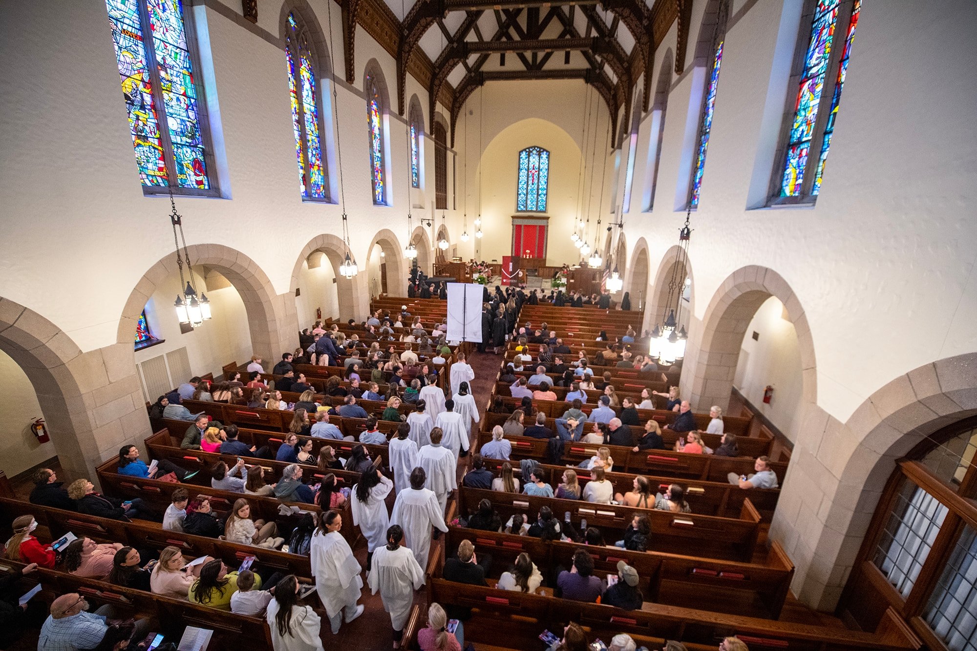 For generations, Moving-Up Day has been a celebration of students' academic achievements and a testament to their love for learning. Today, the ceremony symbolizes our students “moving up” a row of pews in Gunnison Memorial Chapel—filling the seats left open by the class ahead of them before they too move on and open doors for classes to come. The ritual is followed by a ceremonial “tapping” of new members of Omicron Delta Kappa, the leadership honor society.