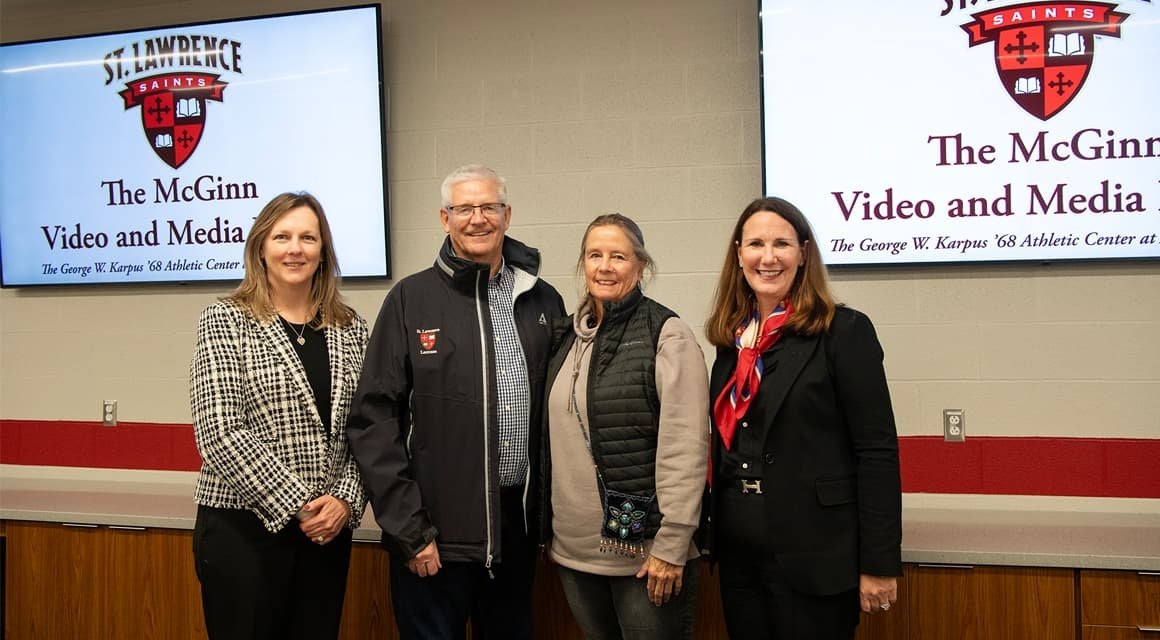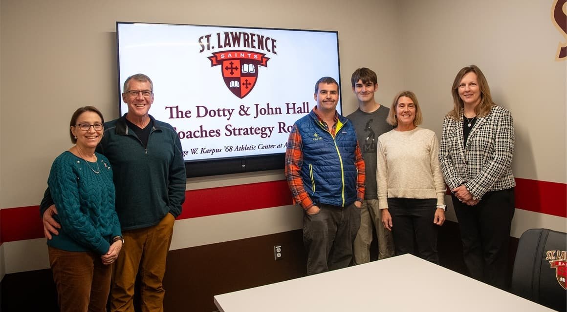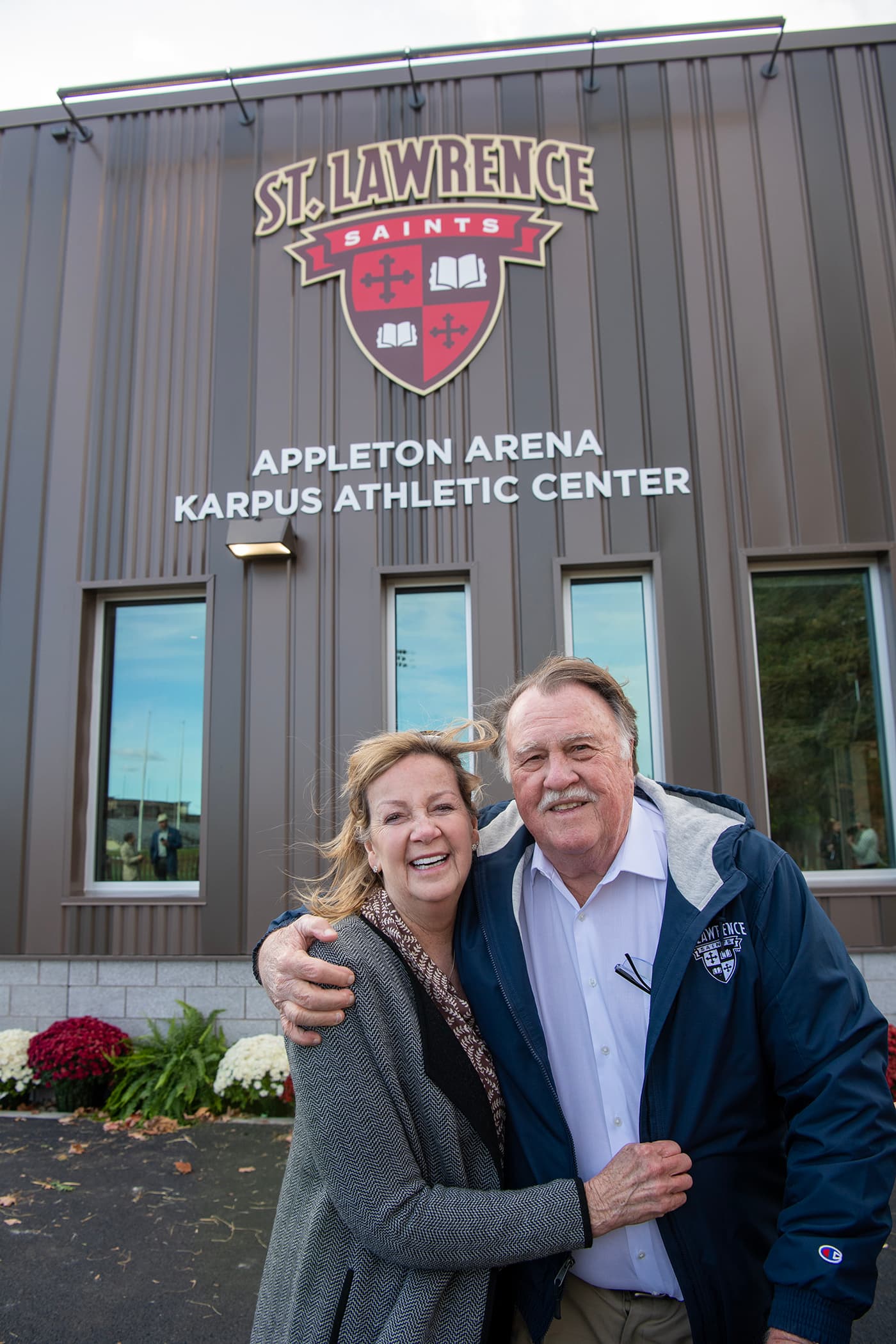 Over 250 Laurentians gathered for the dedication of the George W. Karpus ’68 Athletic Center at Appleton Arena on October 26, becoming the first to see St. Lawrence’s 95th building on campus.