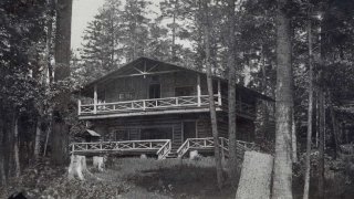 The article details the rich history and enduring appeal of paddling the region's many waterways and features an artifact from the Special Collections—photography pioneer Edward Bierstadt's 1885 photo of Camp Pine Knot in Raquette Lake, New York. The image was commissioned by the camp's designer, William West Durant, who is known for popularizing the rustic Adirondack camp style that charmed visitors and drew them to the great outdoors.