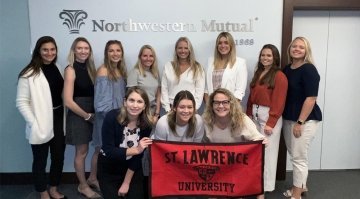 At the Northwestern Mutual Boston Downtown office, Laurentians have a reputation for being hard workers and learning quickly. Madison Wilcox '14, who has recruited many of the St. Lawrence graduates who work there, attributes the group's work ethic and collaborative nature to the community-centered life fostered while on campus.