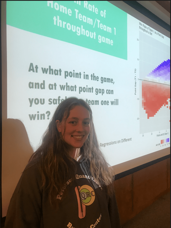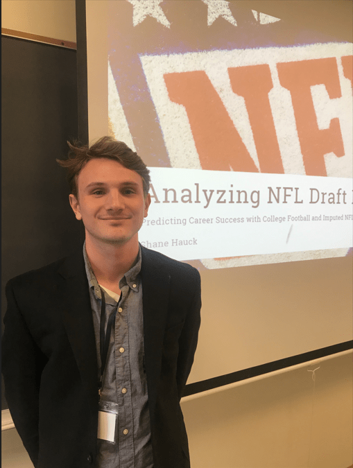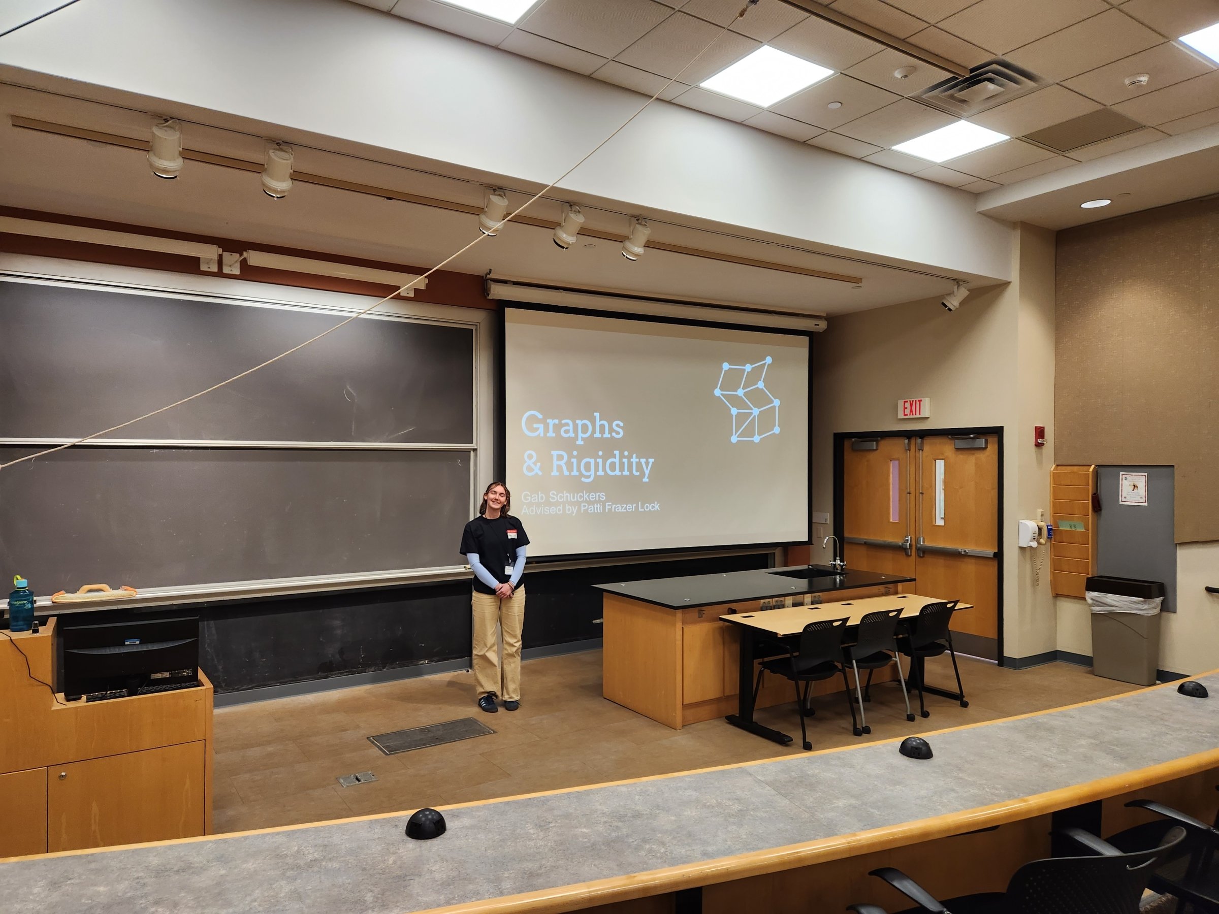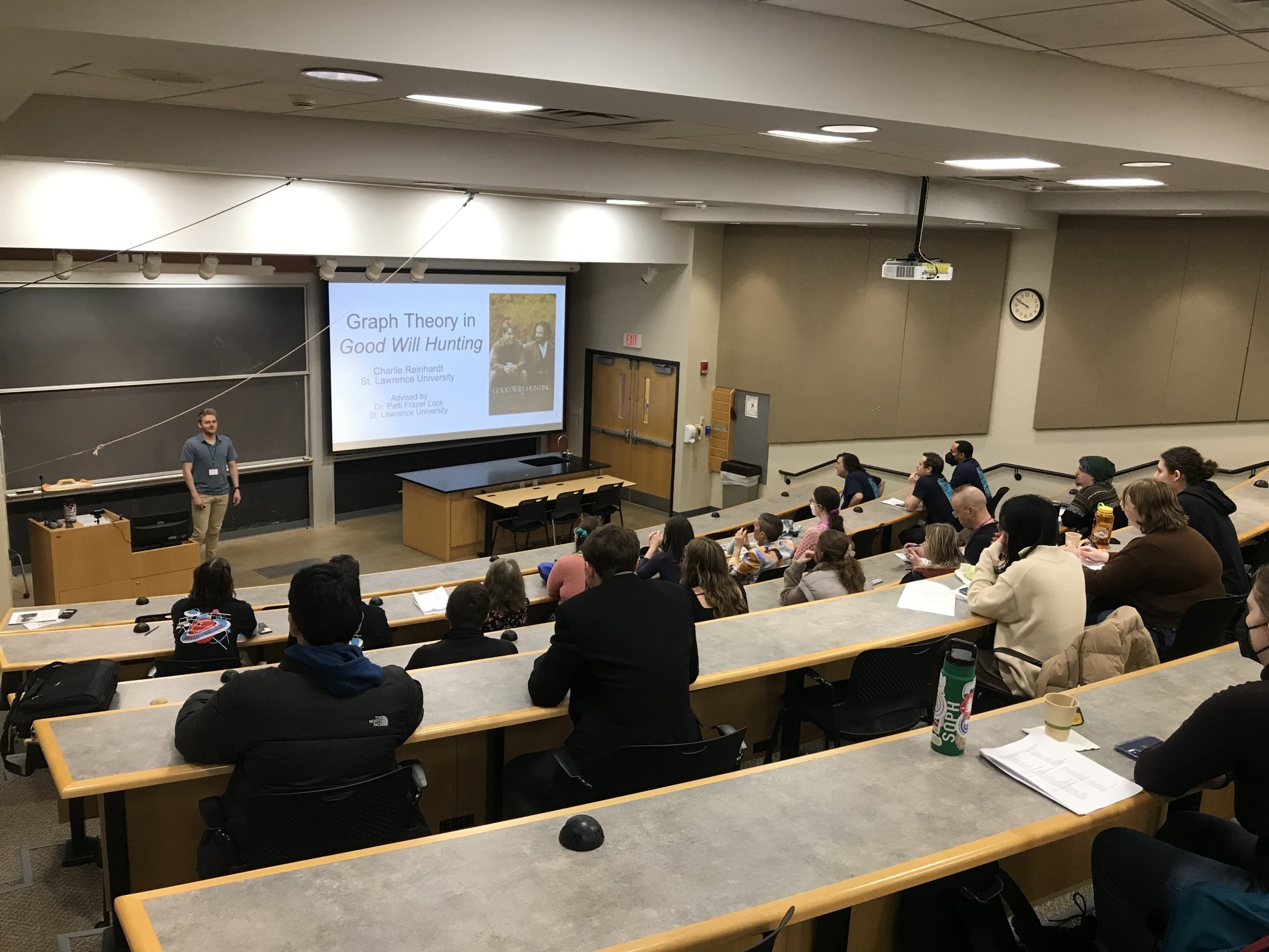 Caleb Hamblen presented work from his senior project on “Alternatives to Statistical Power that Avoid ‘p < .05’ “. Shane Hauk’s talk was on his senior project entitled “Analyzing NFL Draft Prospects: Predicting Career Success with Imputed Combine and College Football Data “. Charlie Reinhardt discussed the mathematics of the movie Good Will Hunting. Cassie Richter gave a talk on “NCAA Volleyball Data Collection and Analysis“. Gab Schuckers spoke on the idea of rigidity in grid graphs.