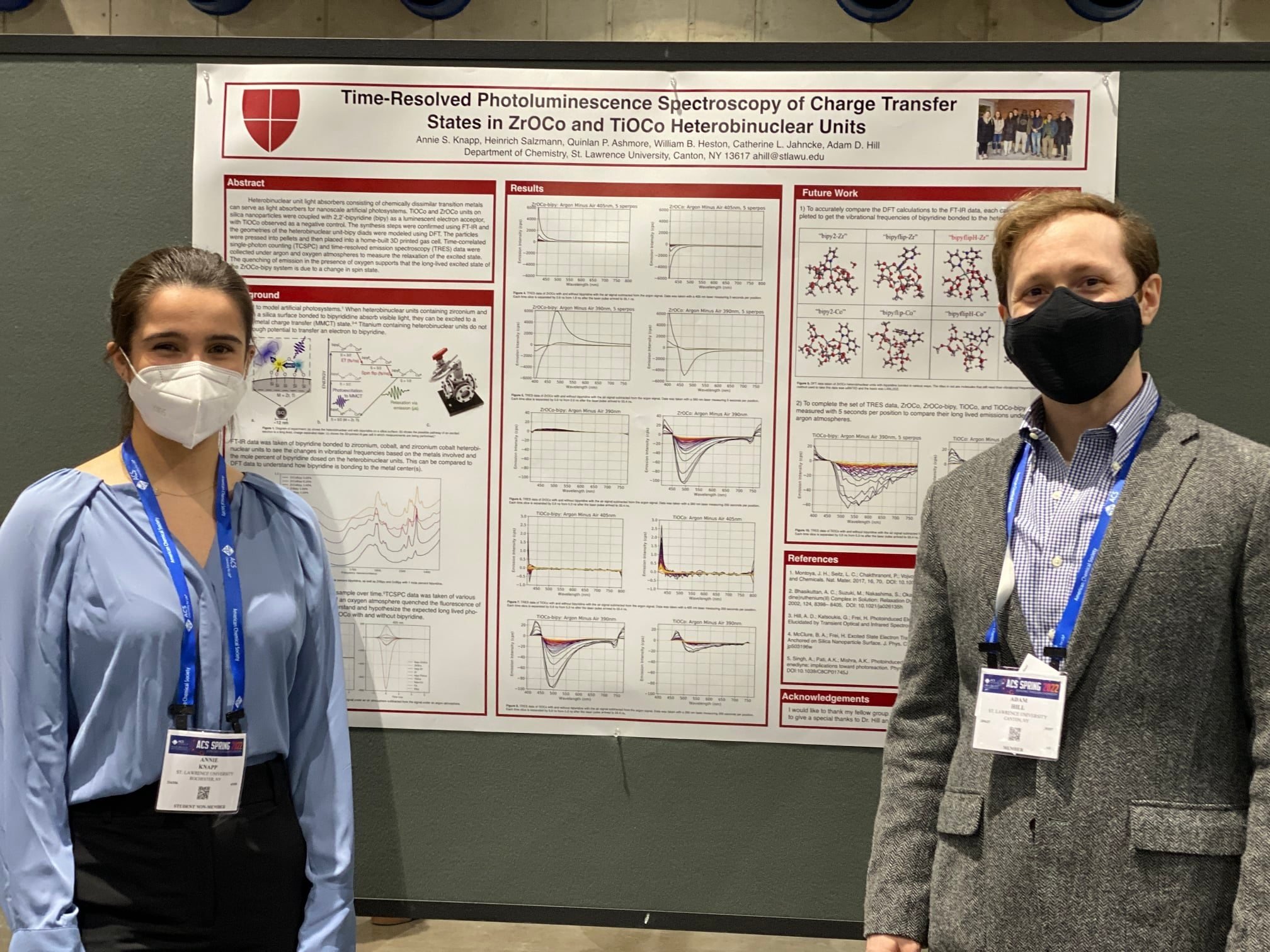 This week, St. Lawrence students and faculty are at the 263rd National Meeting of the American Chemical Society in San Diego, presenting their research in posters and oral presentations. Aseman Bagheri Sheshdeh '22, Annie Knapp '23, and Stephanie Sauve '22 can be seen presenting their posters during yesterday's sessions.