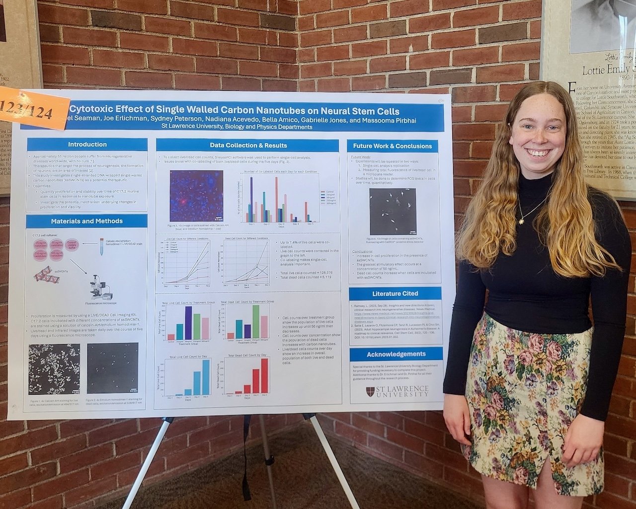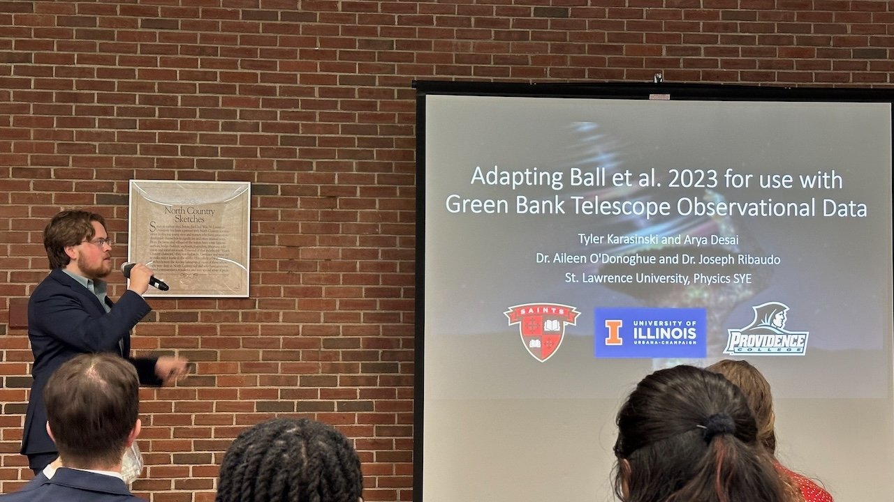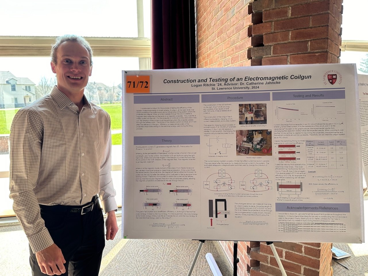 Four students who performed research in the Physics department presented the results of their research at the 2024 Festival of Science, Scholarship and Creativity. Tyler Karasinski '24 gave a talk about automating a method of reducing data collected with the Green Bank Telescope, and Logan Ritchie '24, Rachel Seaman '24, and Nora Wagner '24 presented posters with their findings.