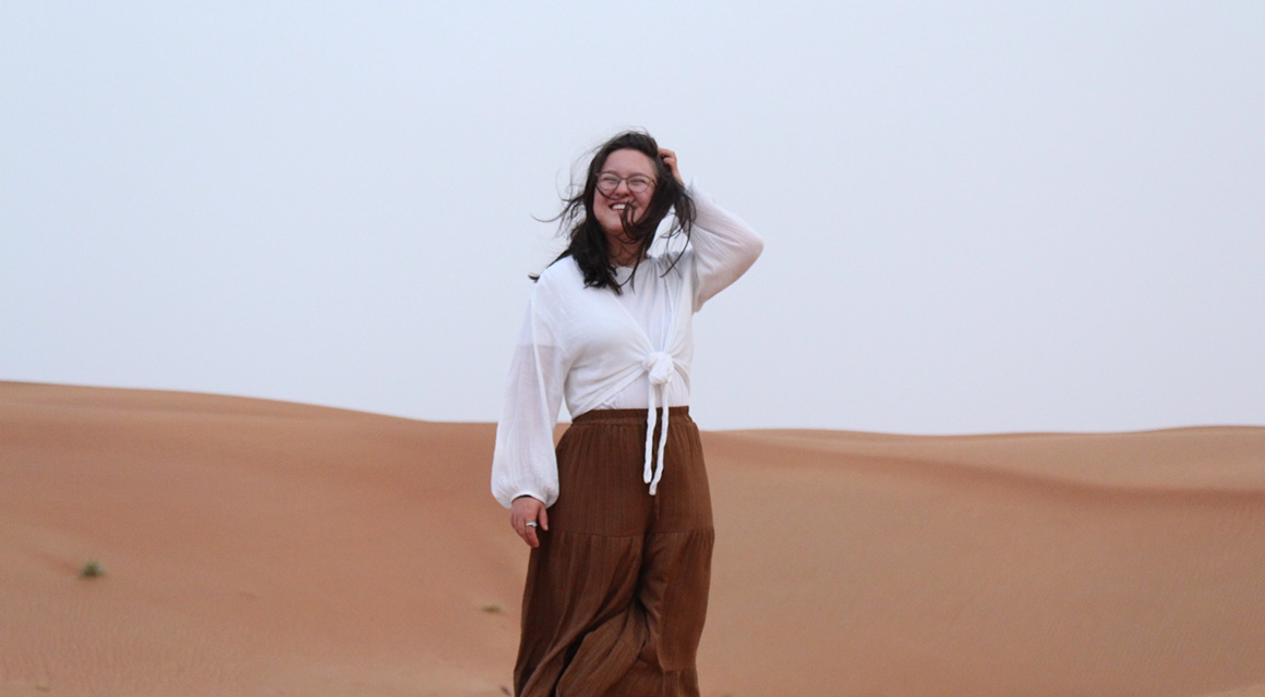 While this opportunity was her fourth study abroad experience—she participated in two programs during high school—it was driven by Miso’s desire to explore Oman’s rich traditional culture while also sharing her own culture and identity. “Gender roles in Oman were very different from those in the U.S. There was so much to be learned and enjoyed in women-only spaces around the country,” she reflected. One of her favorite memories was celebrating Eid with her language partners, who adorned their arms with henna in preparation for the holiday. Miso says, “It was very inspiring to grow a strong friendship with my language partner, Muzna.”