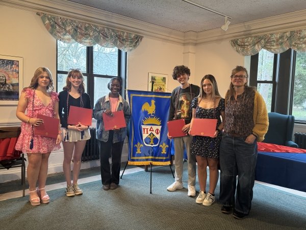 Halla Chappell, Alana Haehl, Charles Meyer, Faith Olusegun, and Ella Kimberly were inducted into the St. Lawrence Eta Delta Chapter of Pi Delta Phi, the National French Honor Society.
