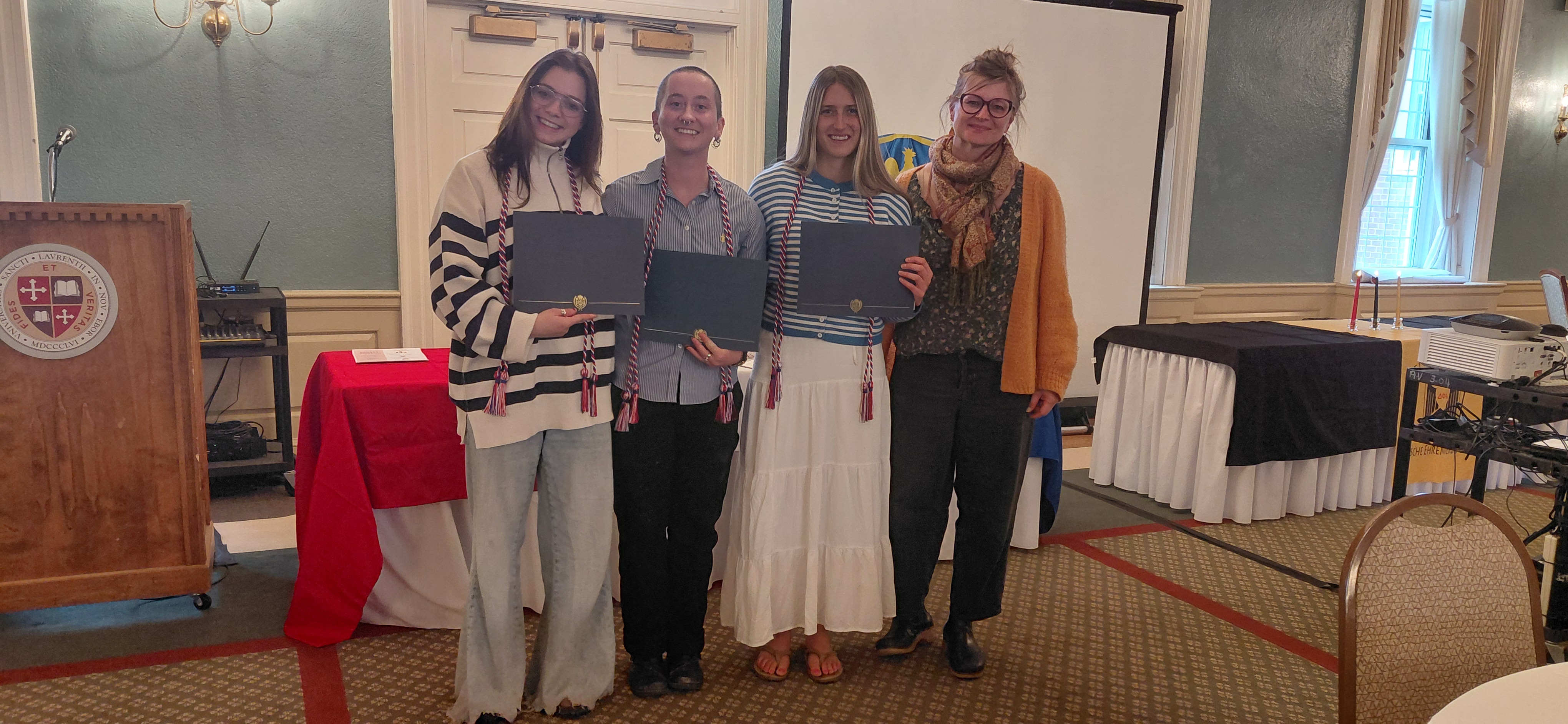 Simone Routledge, EJ Johnson, and Annika Howard were inducted into the St. Lawrence chapter of Pi Delta Phi, the National French Honor Society.