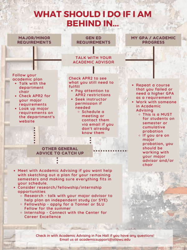 Do you need help? Sorting out where you are academically and where you are going? Understanding your academic standing? Figuring out university policies and procedures? Thinking about your future after college?