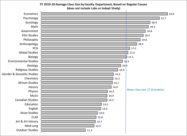 As we tackle the class size issue, we must be mindful of our liberal arts mission and the value prospective students place on close engagement with faculty, weighing these alongside the very real financial challenges we face. We think that given the small scale of this problem, the most effective way to address it is to engage with and support chairs in finding solutions to specific cases of persistently low-enrolled courses and low course caps. Acknowledging the difficulty that chairs and coordinators may face in addressing issues related to specific low-enrolled classes, we envision a central role for the AVPA and ADFA in helping chairs strategize about how best to work with their faculty on the relevant issues to support change.