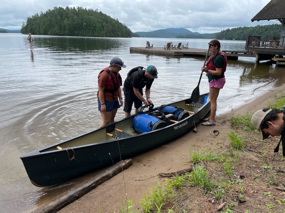 A week later we waved hello from the dock at their new home for the semester, Arcadia, on Lake Massawepie. They arrived hot and tired after a particularly long, hard day experiencing some white water canoeing, paddling Dead Creek, which has that name for a reason, and multiple portages and were greeted by ADK Semester alumni and delicious fresh melon from the local farm that provides us with our produce for the semester.