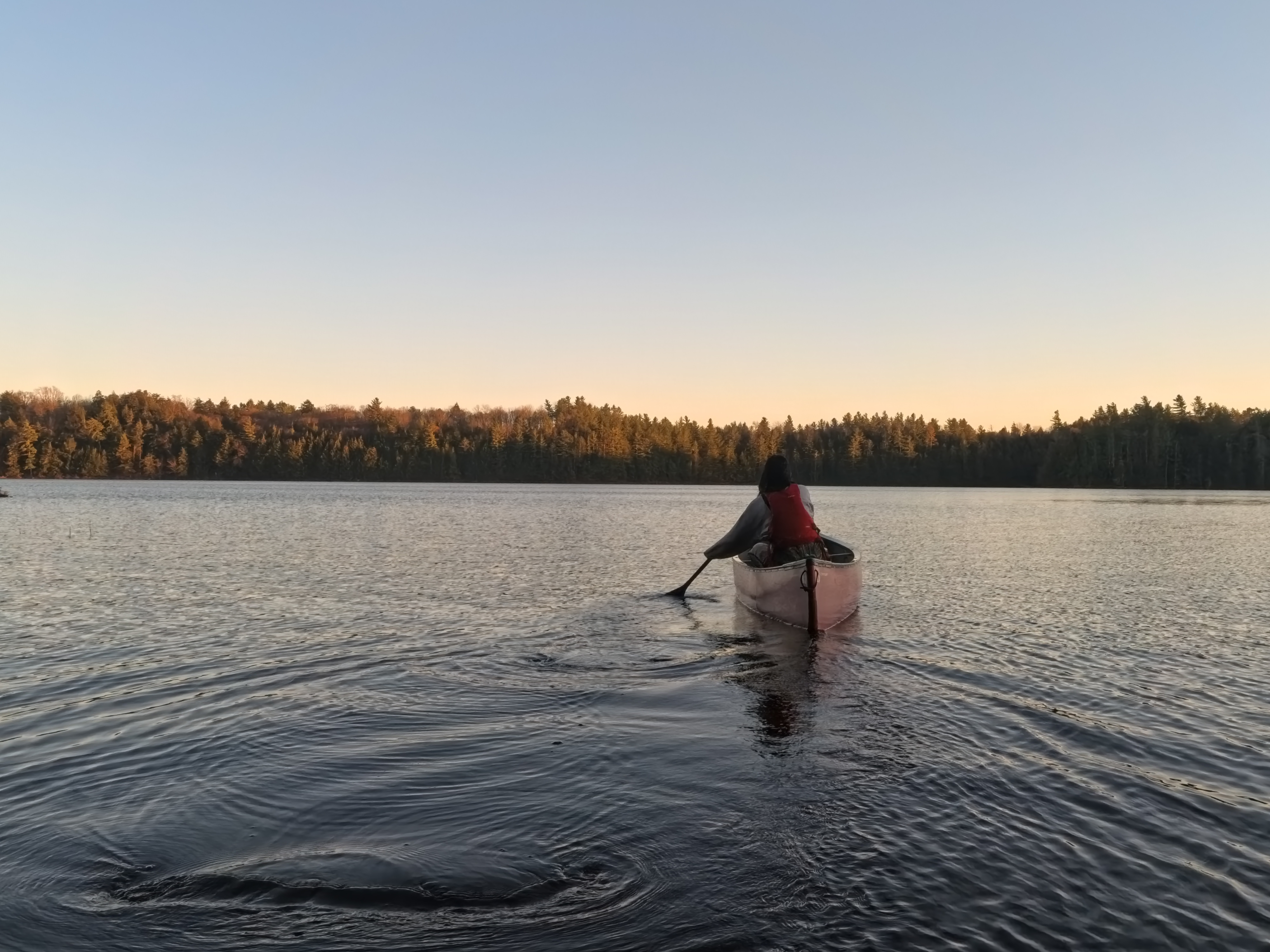 Morning sun shone down on Arcadia one October Sunday. 7:15 came and went, and no breakfast bell was rung. Slowly, the kitchen began to come to life. The propane stove clicked to light, cutlery rattled, and eggs were beaten. Director Jacob McCoola and Arcadian Eva-Jo Nielsen were orchestrating the symphony of brunch preparations. One by one, other Arcadians arrived. Emerging from fog-cloaked Massawepie, they paddled their canoes up to South Dock, welcoming each other with warm hugs and “I missed yous.” Slowly, the village was filled with the habitual buzz of laughter and conversation. The door creaked open to the bustling kitchen as the final Arcadian, Marina Garlick, joined the hubbub. With a chorus of chairs scraping across wood floors and mugs being filled with coffee and tea, the Arcadian settled into an aromatic mid-morning feast. The cooks presented brunch: Dutch babies, crispy roasted potatoes, spicy sausage, and fluffy scrambled eggs. Ravenous Arcadians dug in, filling plates and passing toppings. Once everyone was situated with a full plate and a steaming mug, they eyed each other, waiting to hear the tales and takeaways of their respective solos.