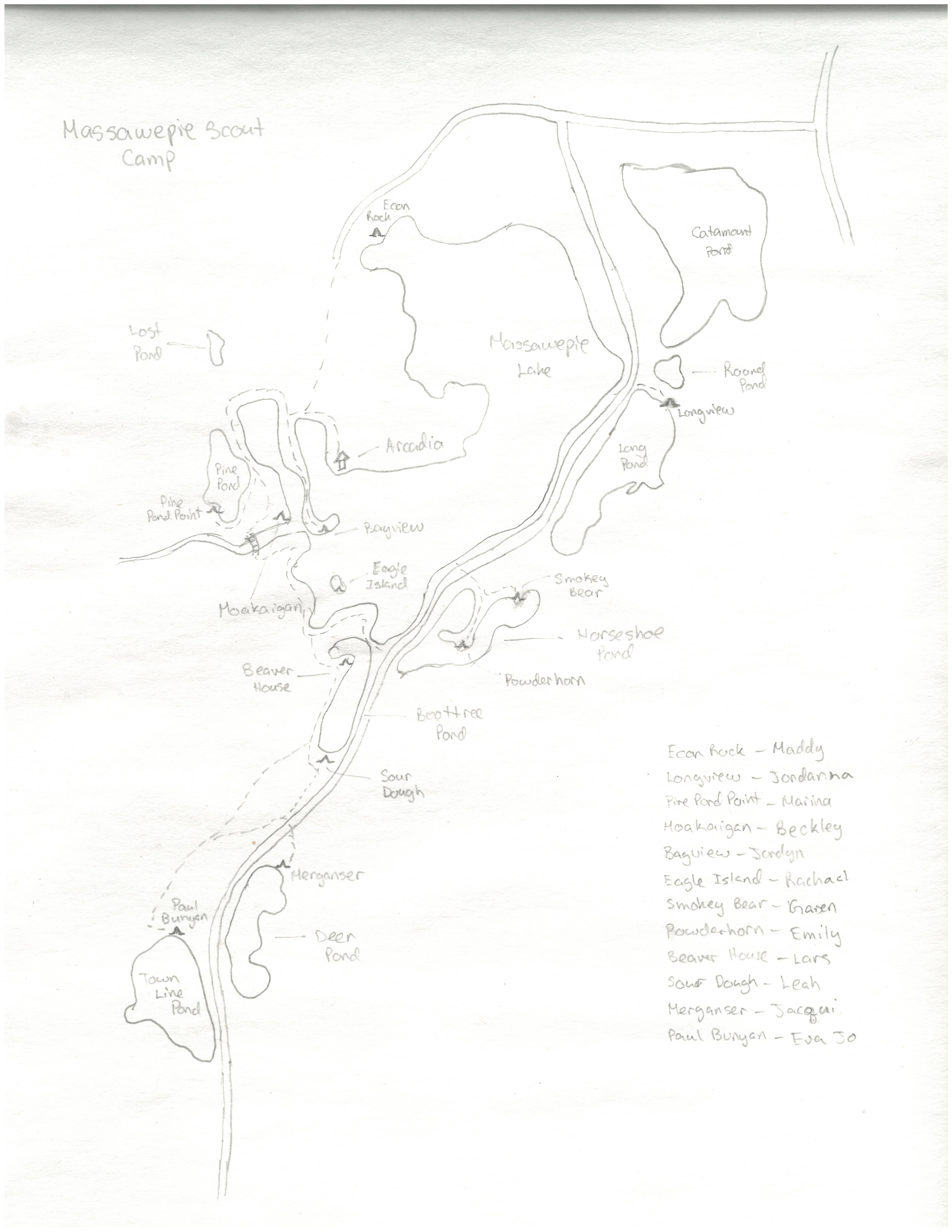 Jordanna Samburgh, an Arcadian comfortable by herself out in the world, was the next to speak. Her solo was relatively uneventful; however, a notable aspect was the appearance of a “blurry figure” while she was in her hammock reading. “I didn’t have my glasses, so I couldn’t really see what it was, but I wasn’t too worried,” she laughed. We were astounded by her calmness in that situation of uncertainty, but not too surprised. It is Jordanna after all! She went on to recount that the figure was a woman with her dog who walked into Jordanna’s camp and then left without a word. This description was met with a chorus of “Ghost!” from the table. This experience was just one of many that demonstrated how comfortable she was being solo, even in an encounter with the supernatural.