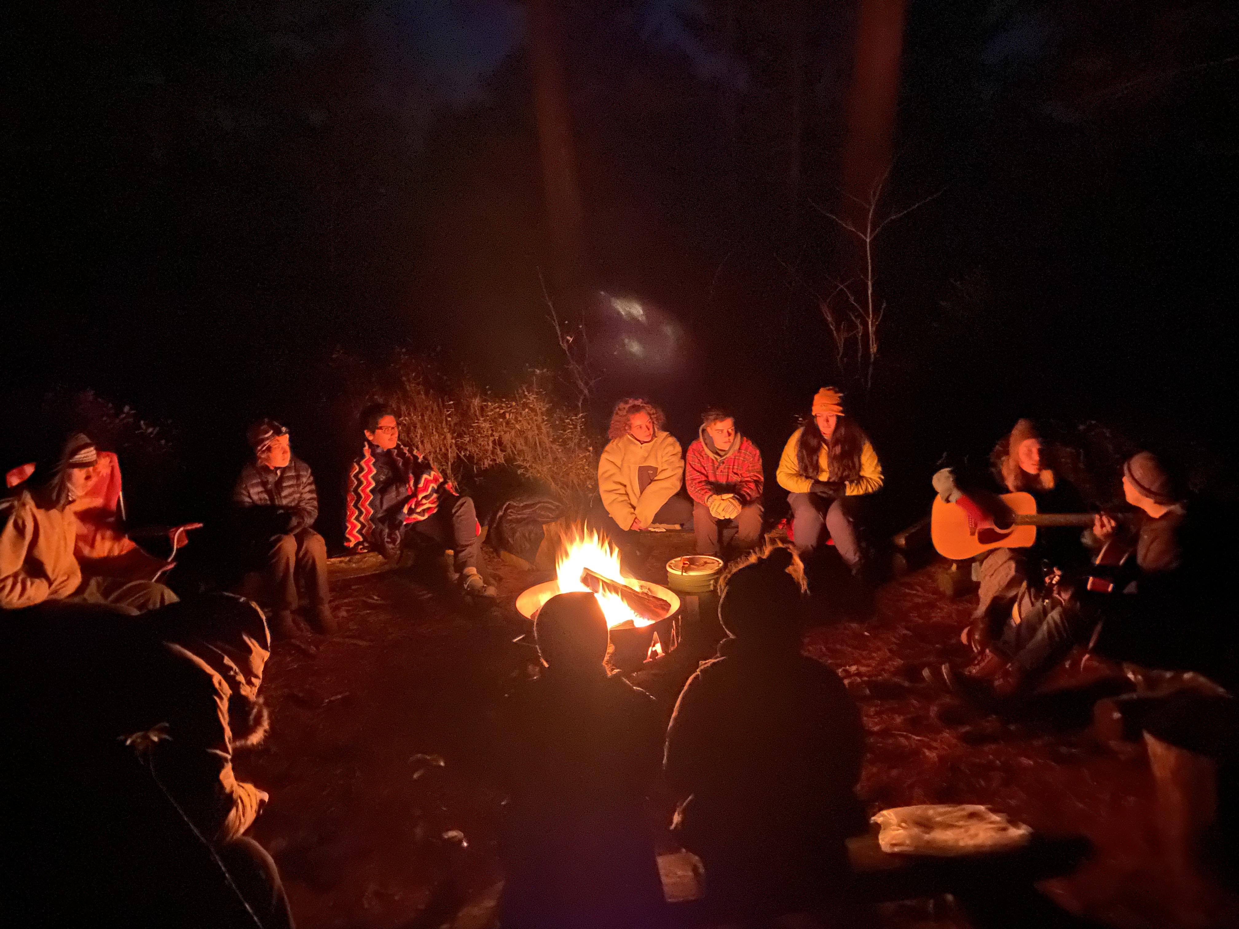 Arcadians’ relationship with the Adirondack community does not just function one way. The people and culture that characterize this region influence us as well. Some Fridays, we have performers from the Adirondacks visit our village to showcase their talents and share their stories. On the Friday before trail work day, we hosted Caitlin Kelly and Tyler Dezago. We listened to their folk style and acoustic melodies while spotlighted by the glow of a typical Arcadian campfire. In between songs, Caitlin, an Adirondack Semester alumna and former Adirondack Mountain Club trail crew member, spoke to us about her Adirondack adventures after graduating from St. Lawrence University.