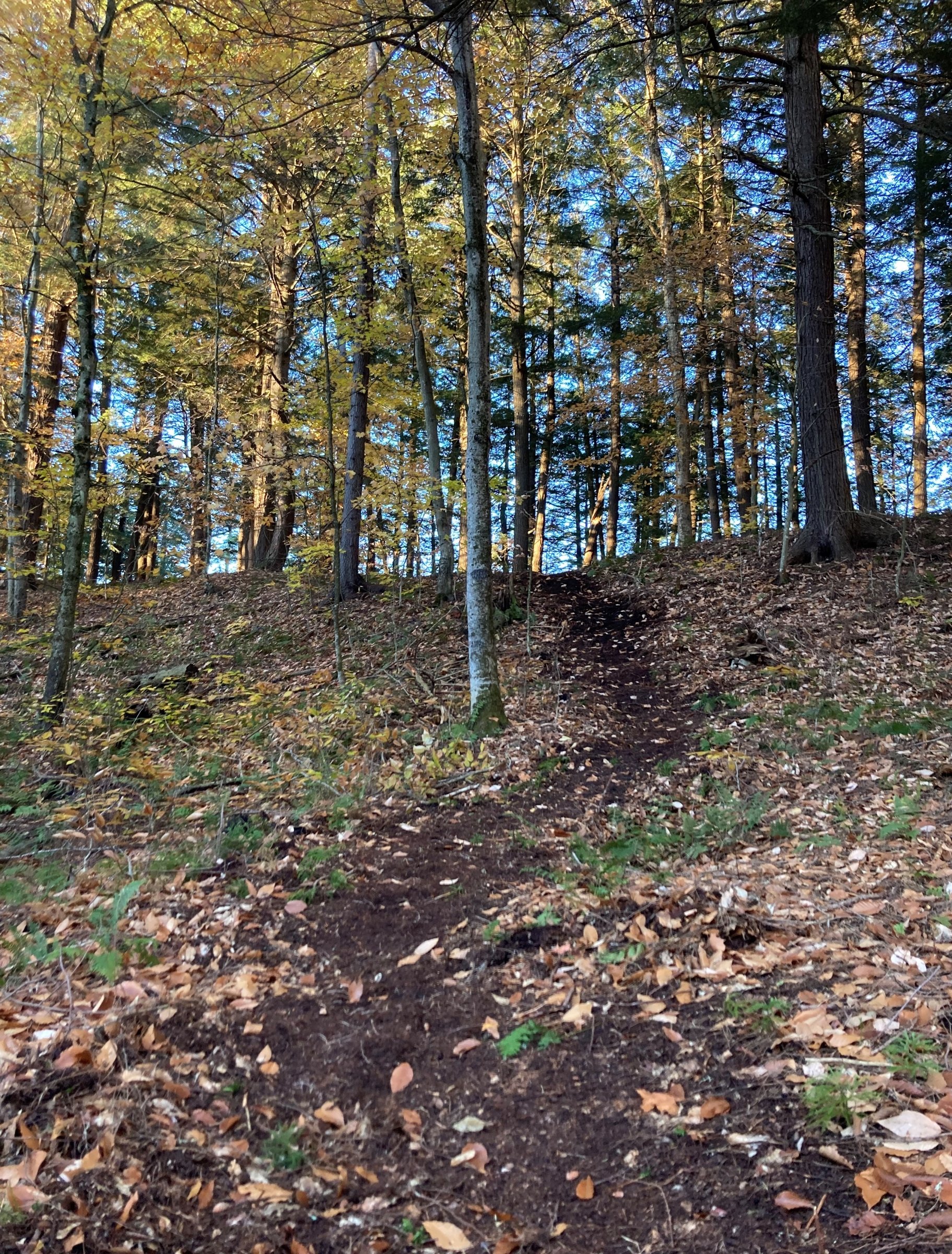 During our own trail work day, after moving the privy at the Four Points lean-to, our group sat down for lunch with dirty knees and numb finger-tips. Our breath left the remains of tired conversations to linger in the cold lake air. After a while, Peter rallied us back together and proposed Project #2: Build a completely new portion of the white trail. Before this point, we had only maintained the already existing trail. As we walked behind Peter, who was showing us his master vision, we remembered what Caitlin had said. Trail work is not an easy or glamorous job, but we excitedly traced the new route and eagerly grabbed our tools with fatigued arms. After a couple of hours of sawing roots, raking brush, and grading soil, Project #2 was complete. We walked on the new trail and envisioned the usage for years to come.