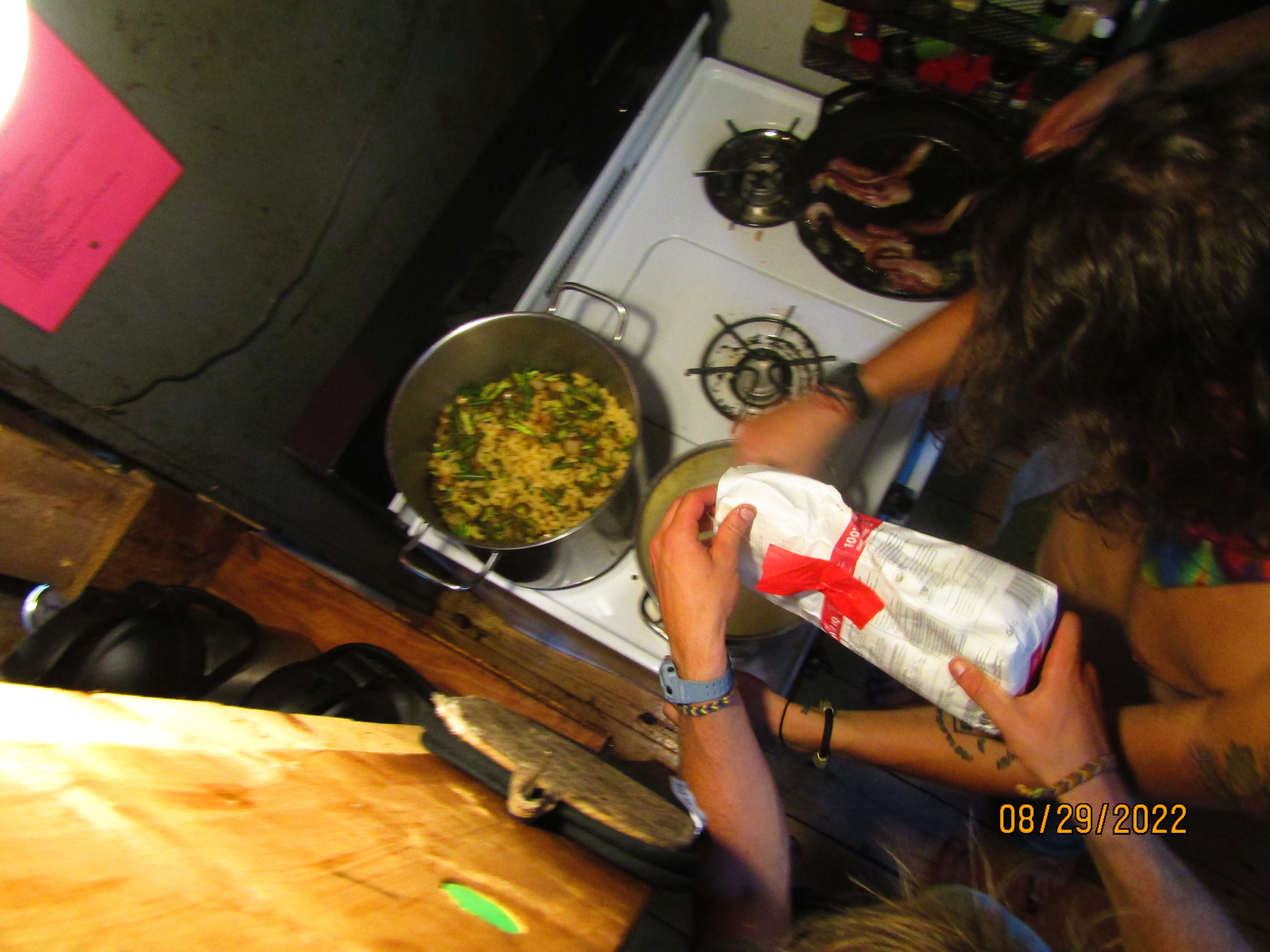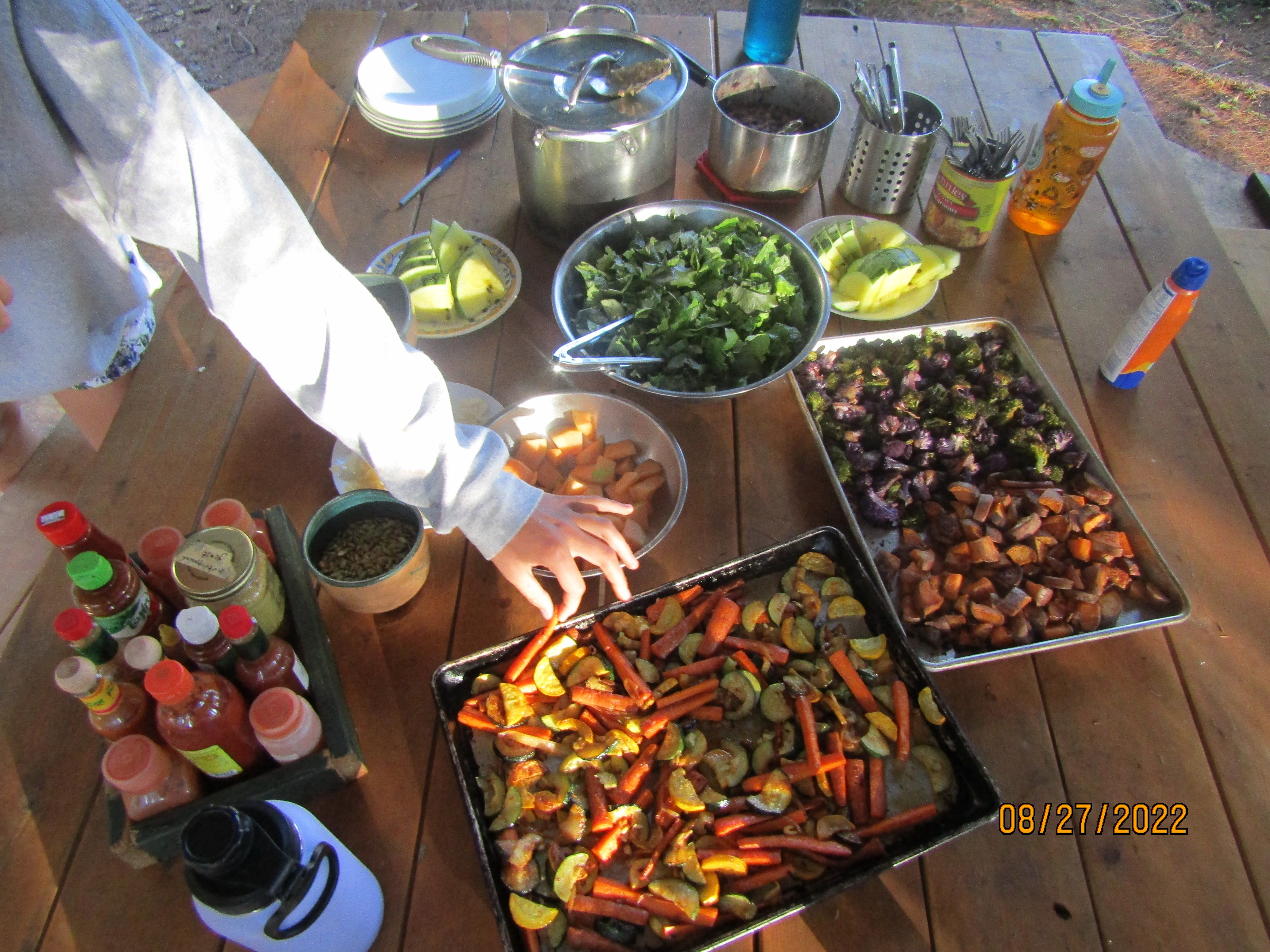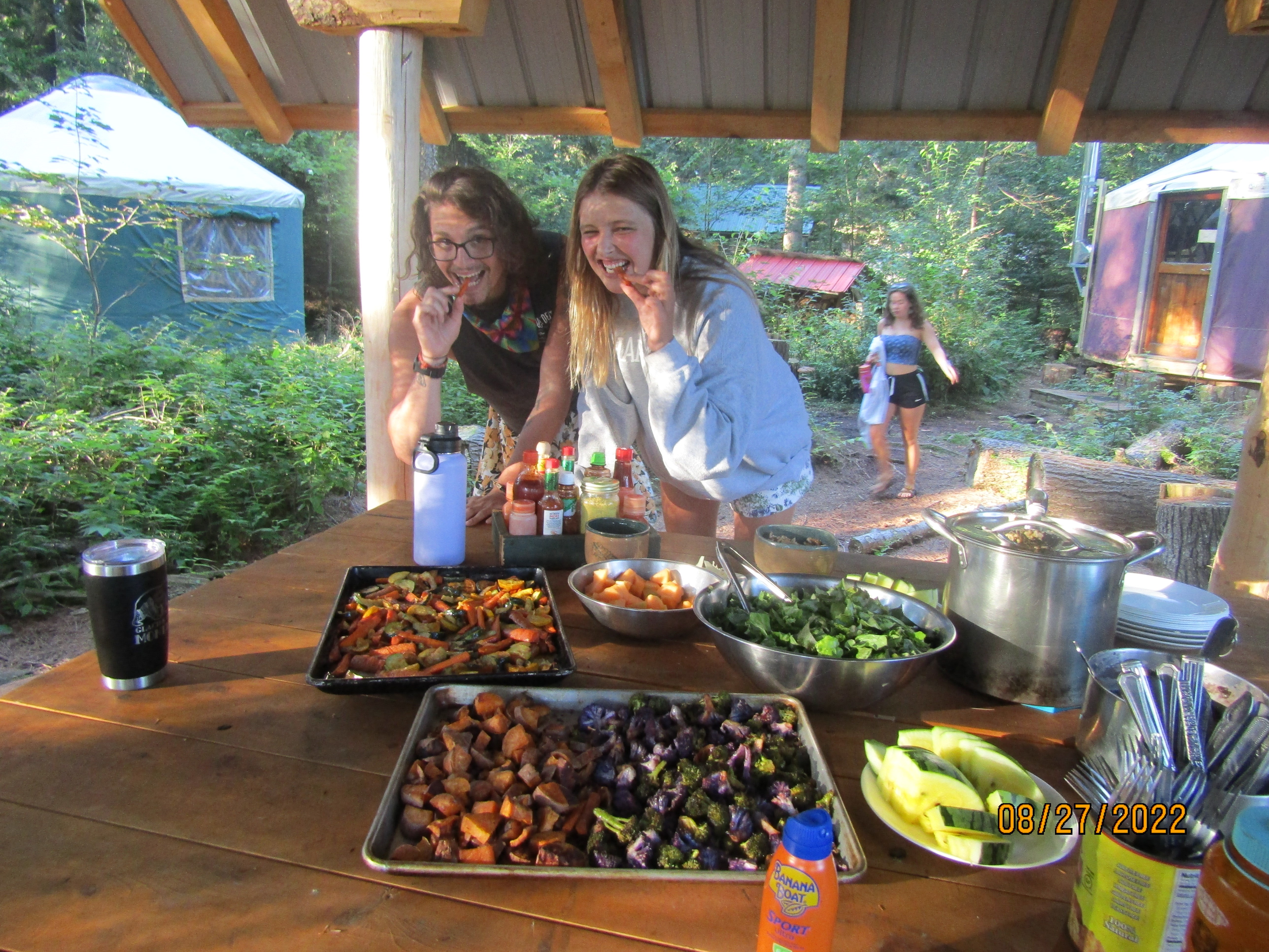 As the conversation trickles in once again, gratitude is shared with the chefs as well as commentary on food preferences. During our mealtimes, many secret preferences have been revealed: Kim loves hot sauce, Will puts cheese on just about everything, Autumn N. despises chunks of tomato, and Elder Autumn will happily clean off seconds. As these perceptions of our food are swapped, our community is strengthened. We may all have different spice tolerances or ideas about tomatoes, but the space for us all to share and laugh is maintained. Much like our local ingredients, we are a community with shared roots; whatever happens to one of us affects us all.