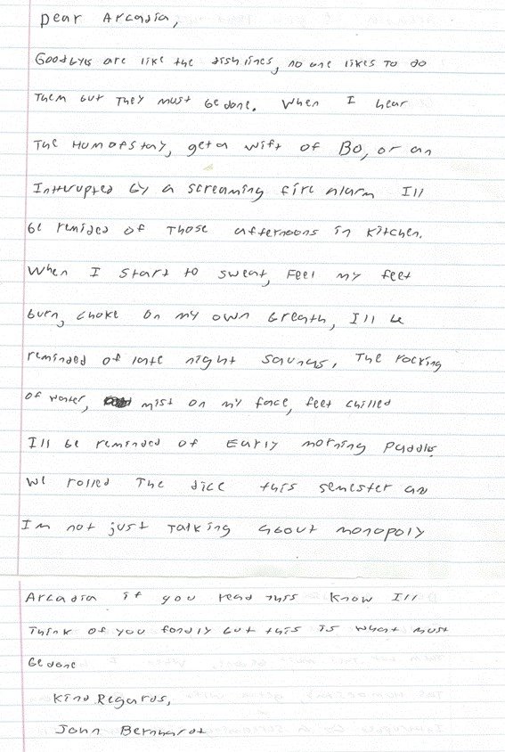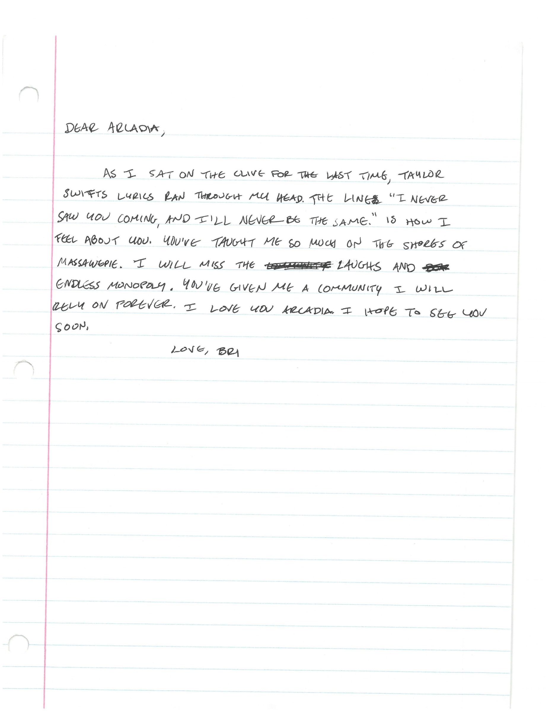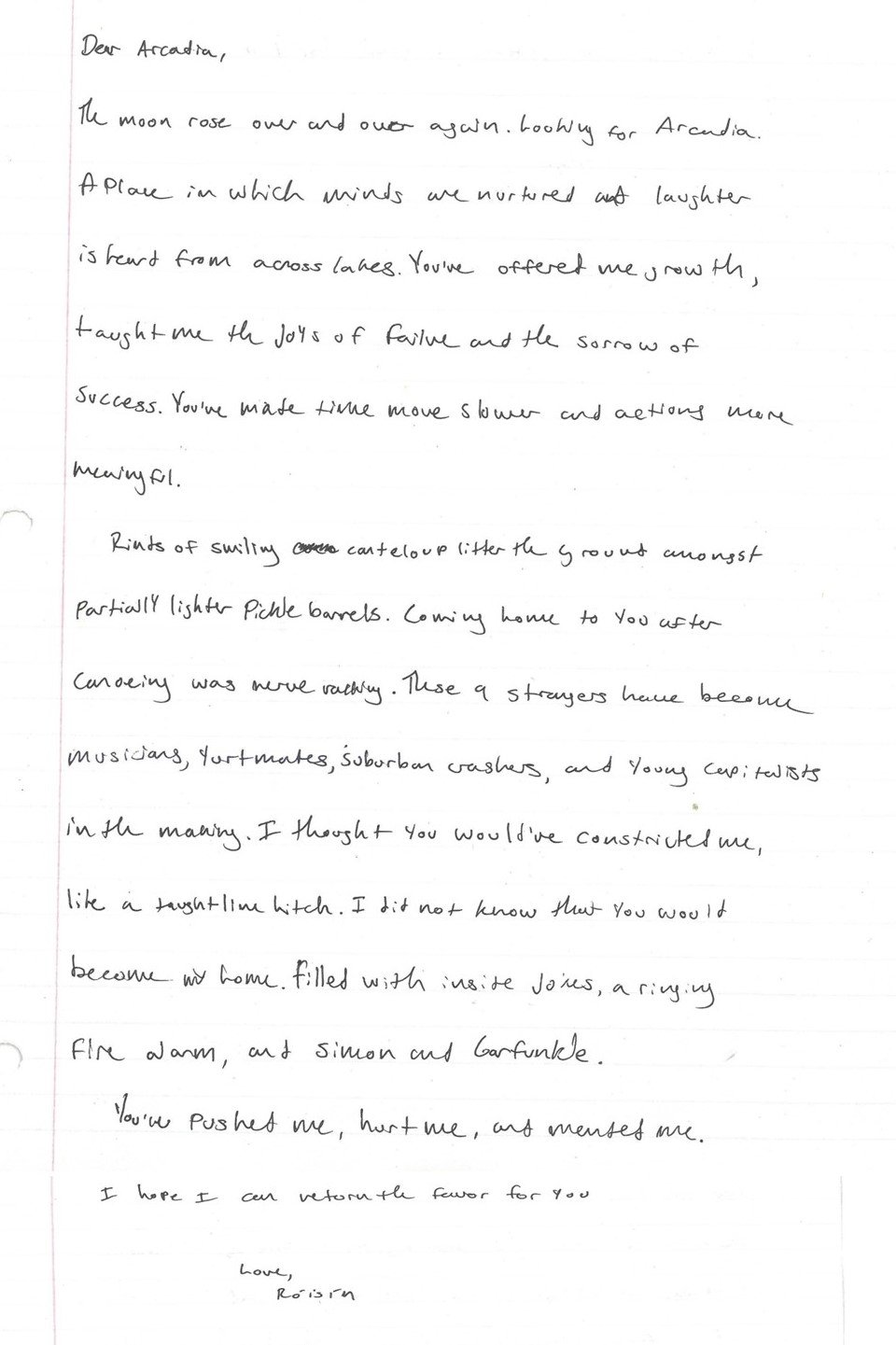 During our final week as residents of Arcadia, we each took the time to pen a farewell letter to the place we called home for the previous three months. You can read our letters below.